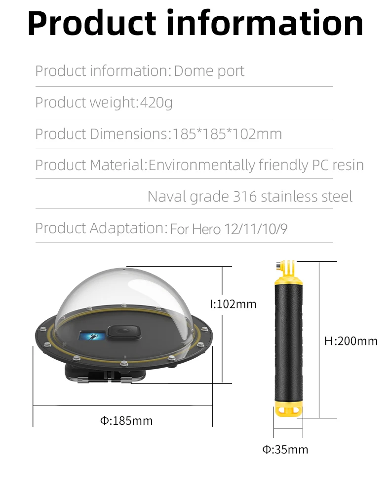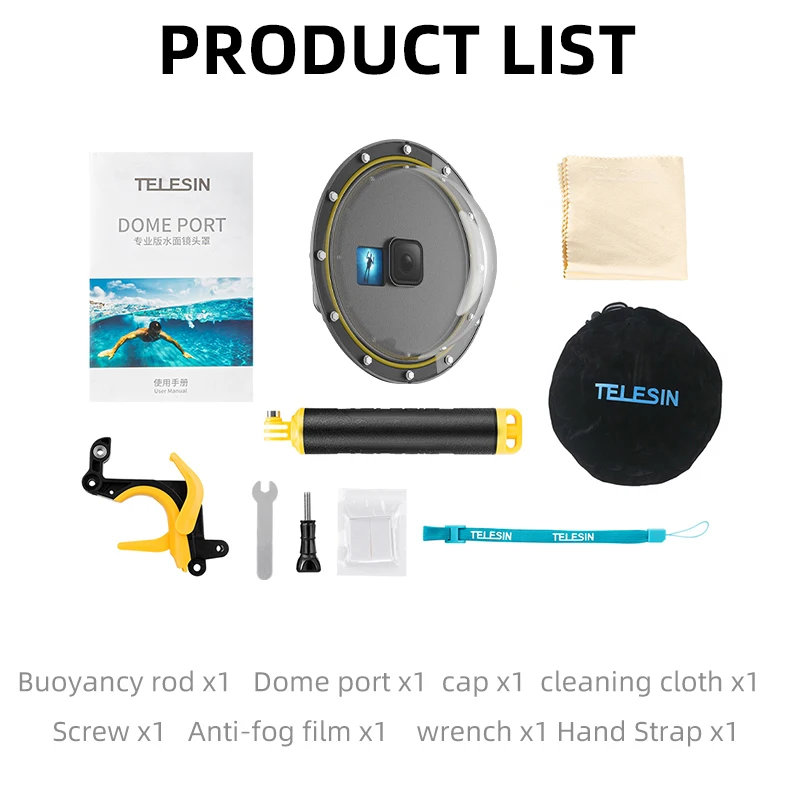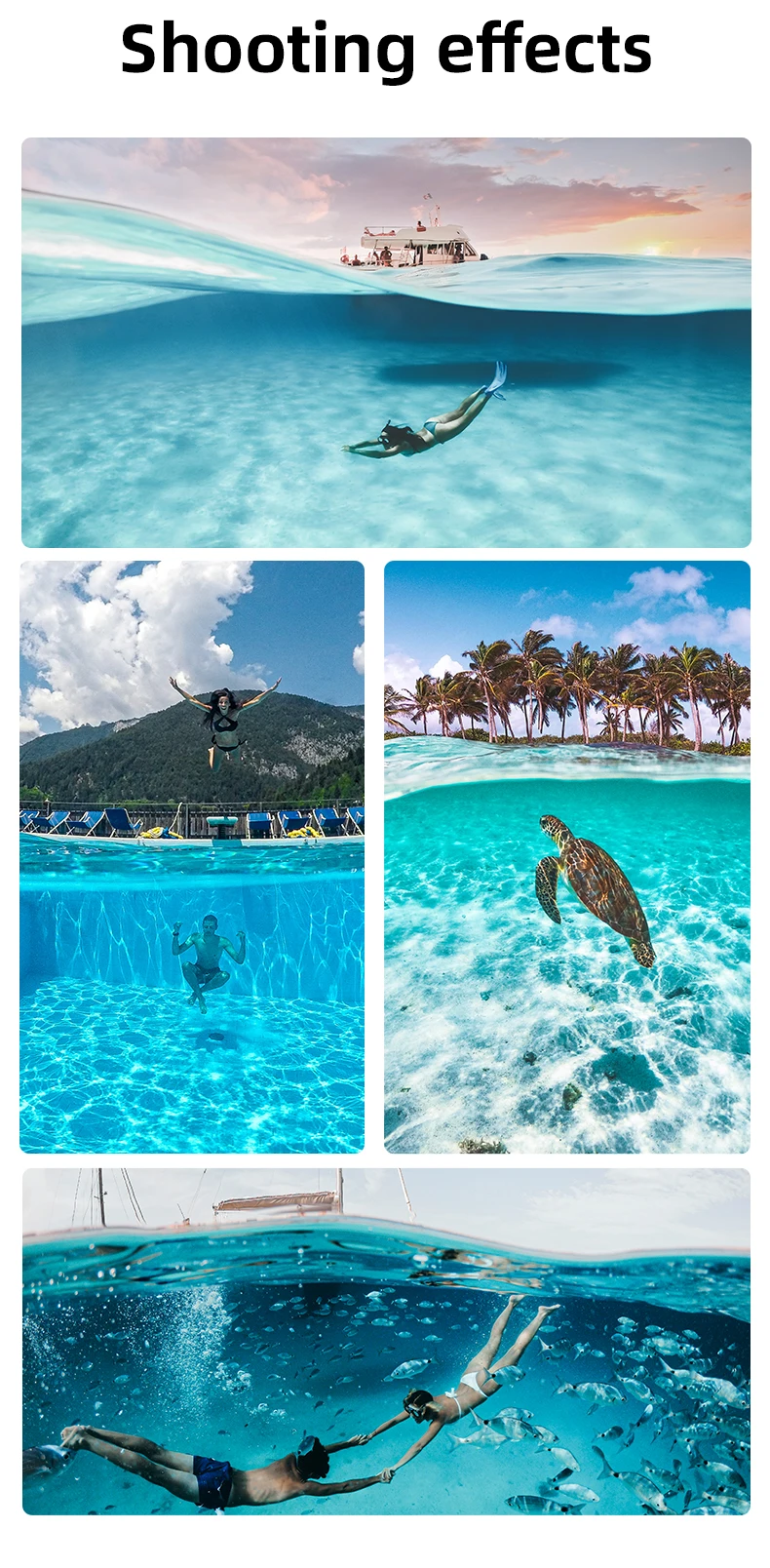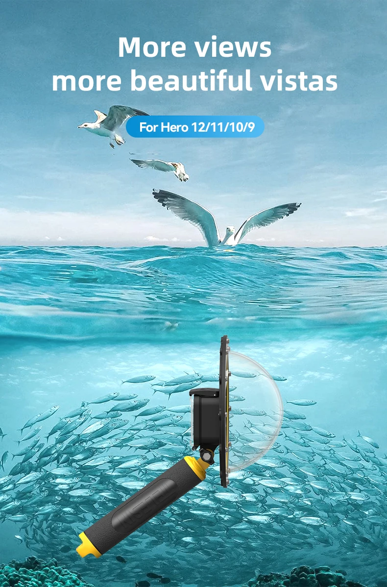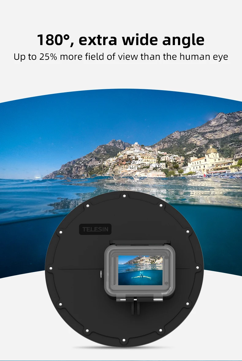 1. El puerto de cúpula TELESIN de 6 ''puede alejar la línea de agua de la lente, lo que permite capturar imágenes tanto por encima como por debajo del agua simultáneamente.