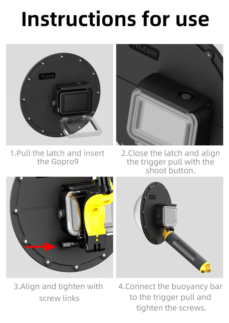 Comprar TELESIN 6 ''Puerto de cúpula 30M carcasa impermeable para Gopro Hero 9 10 11 12 13 cubierta de cúpula de gatillo accesorios de lente