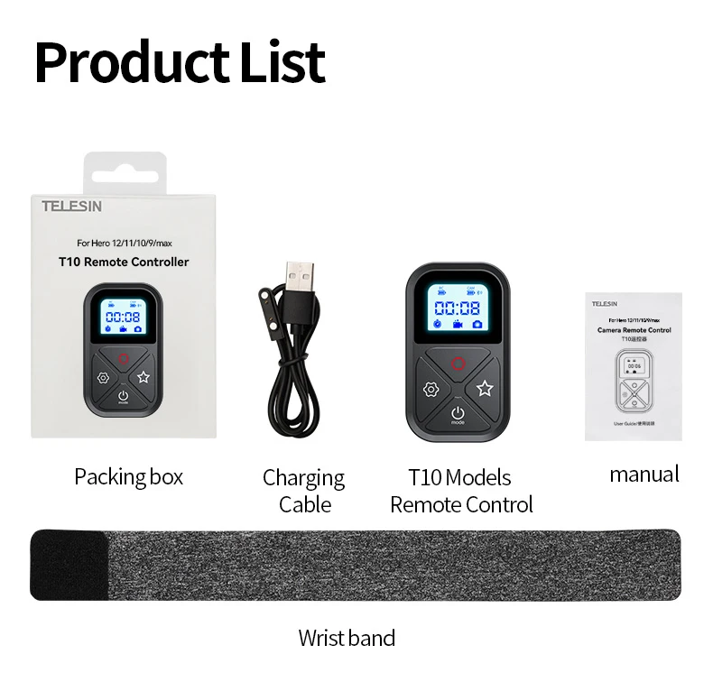 Comprar TELESIN 80M Control remoto Bluetooth para GoPro Hero 13 12 11 10 9 8 Max con correa para la muñeca para accesorios de Cámara de Acción de teléfono