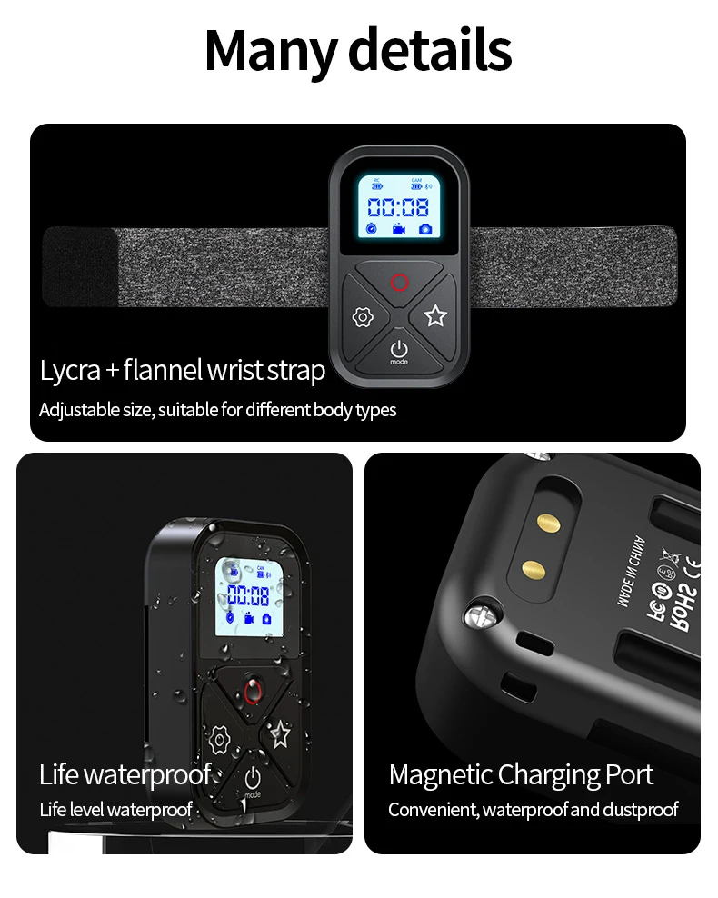 TELESIN-mando a distancia con Bluetooth para móvil, correa de muñeca con pantalla LED para GoPro Hero 8 9 10 11 11 Max 11 mini 12, IPhone, Samsung y Huawei, 80M
