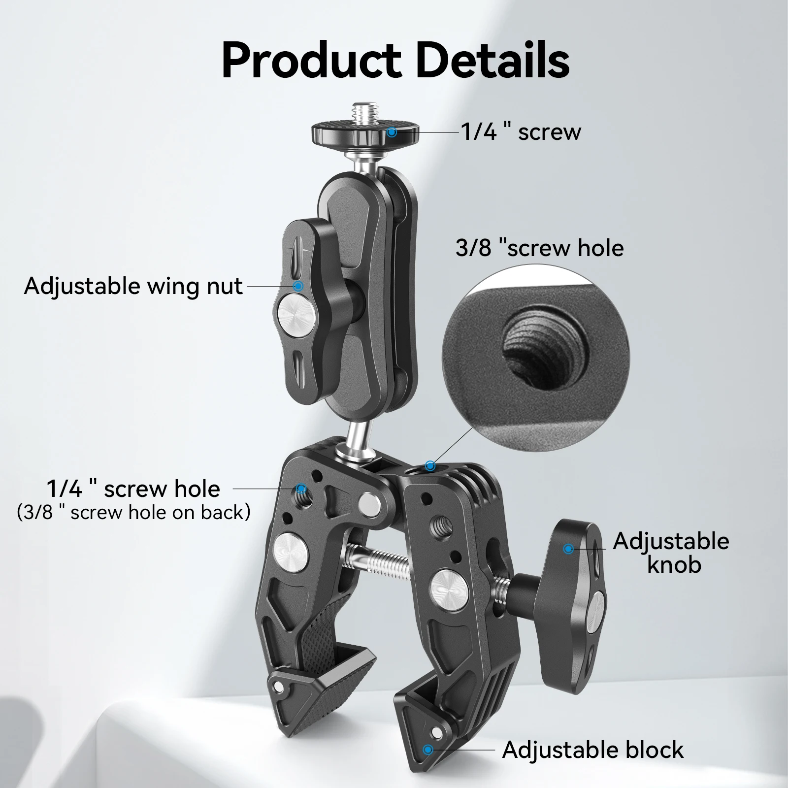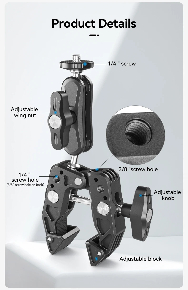 La cabeza esférica antideslizante en ambos extremos se puede girar 360 ° en cualquier dirección,