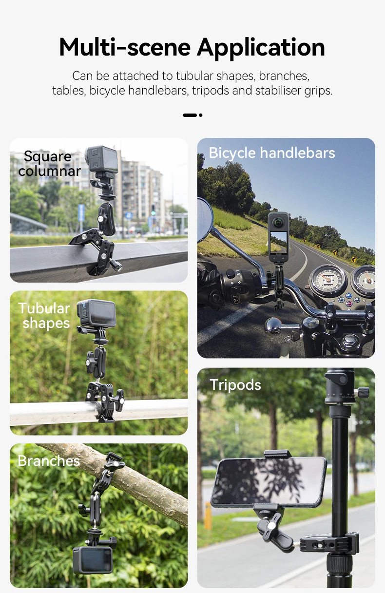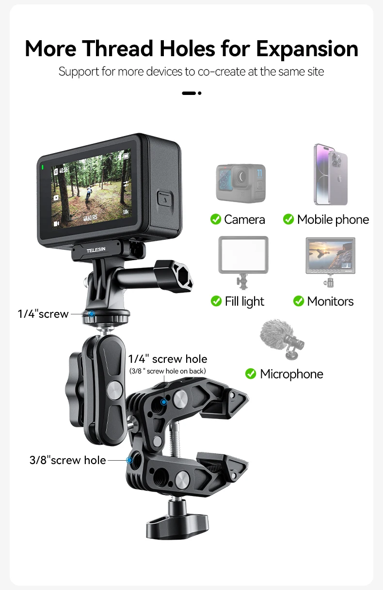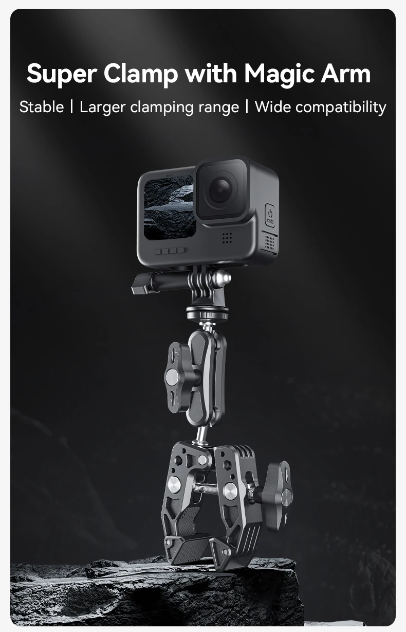 Comprar TELESIN-abrazadera de aleación de aluminio para cámara de acción, brazo mágico de cabeza esférica de 360 ° para GoPro Insta 360 DJI Aciton, teléfono móvil