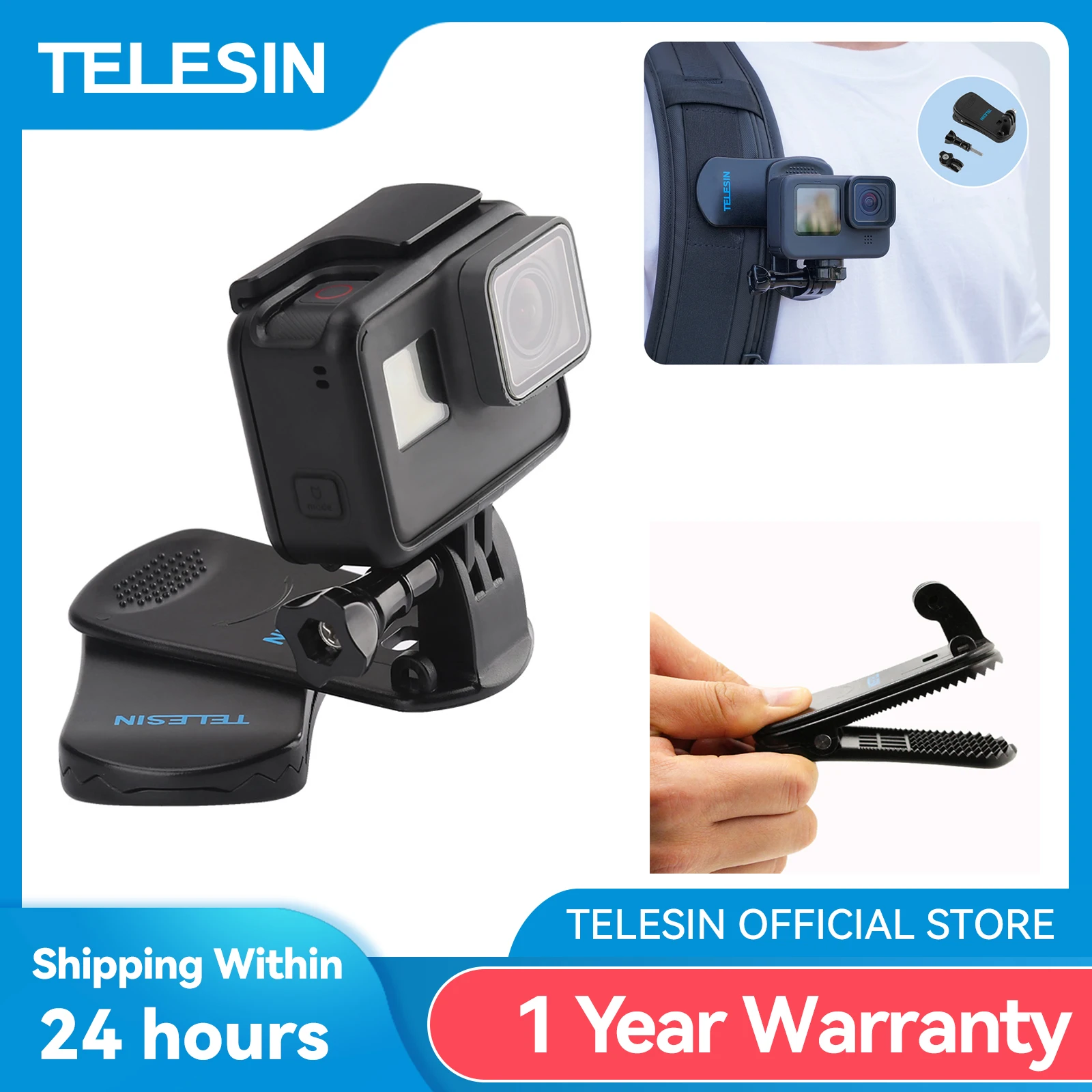 Comprar TELESIN-abrazadera de Clip para mochila con rotación de 360 grados, montaje para GoPro Hero 13 12 11 10 9 8 7 6 5 Insta360 DJI Osmo para cámara de acción