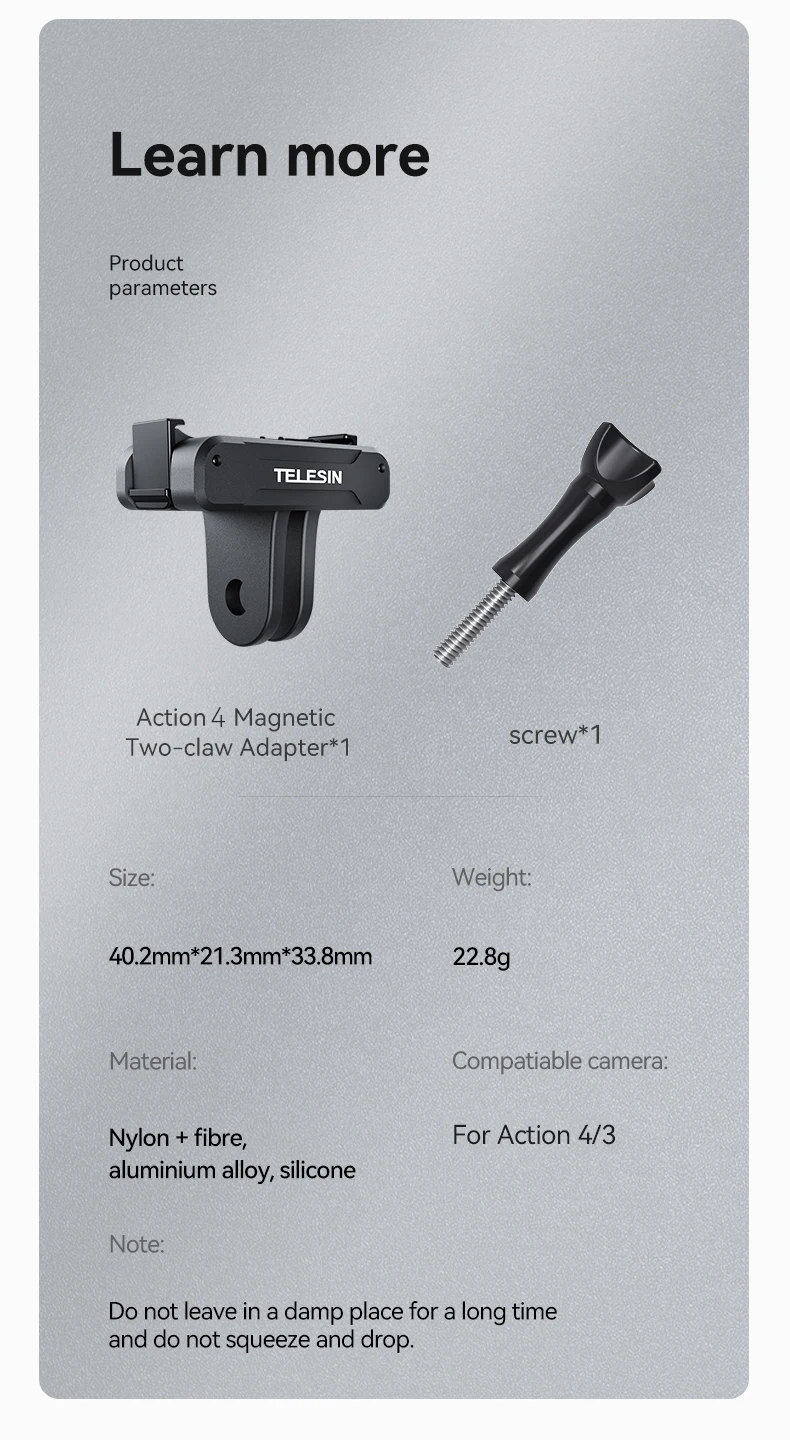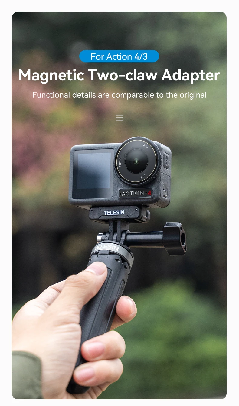 Comprar TELESIN adaptador magnético de dos garras, accesorios de cámara de acción para DJI OSMO Action 3, 4, 5Pro