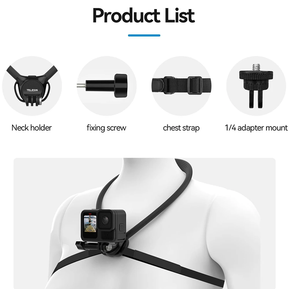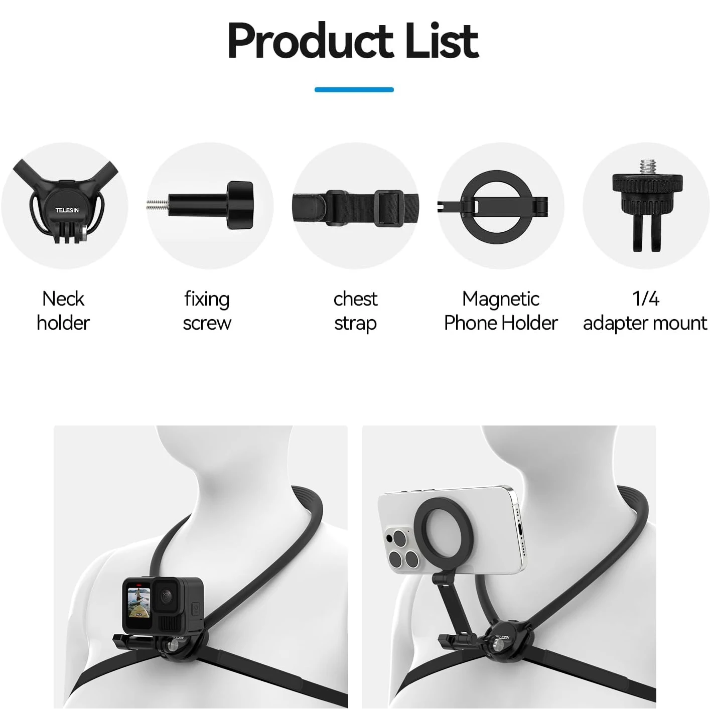 【Montaje para el cuello especialmente diseñado para tomas pob】 TELESIN presenta el soporte para el cuello SE 2.0 recientemente diseñado y mejorado con función giratoria incorporada, que es más estable, más potente, más cómodo y se puede usar durante más tiempo.