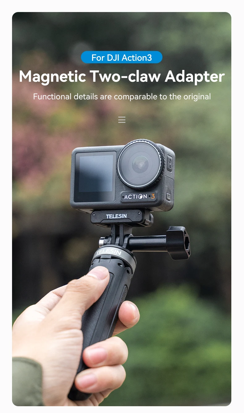TELESIN Timethinker adaptador magnético de dos garras accesorios de cámara de acción para DJI OSMO Action 3 adaptador refinado y seguro