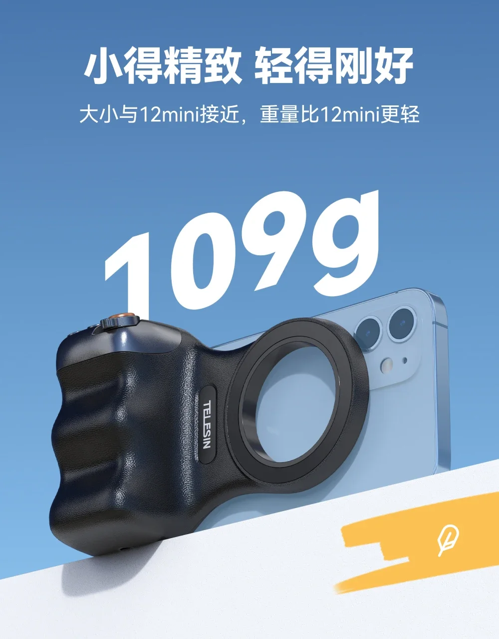 109 g, más liviano que el iPhone 12 mini, no se caerá después de tiros largos.