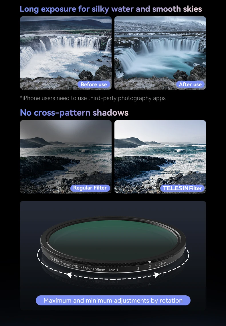 Comprar TELESIN-filtro CPL VND para iphone 15 pro 15 pro max, con funda protectora, accesorios para iphone