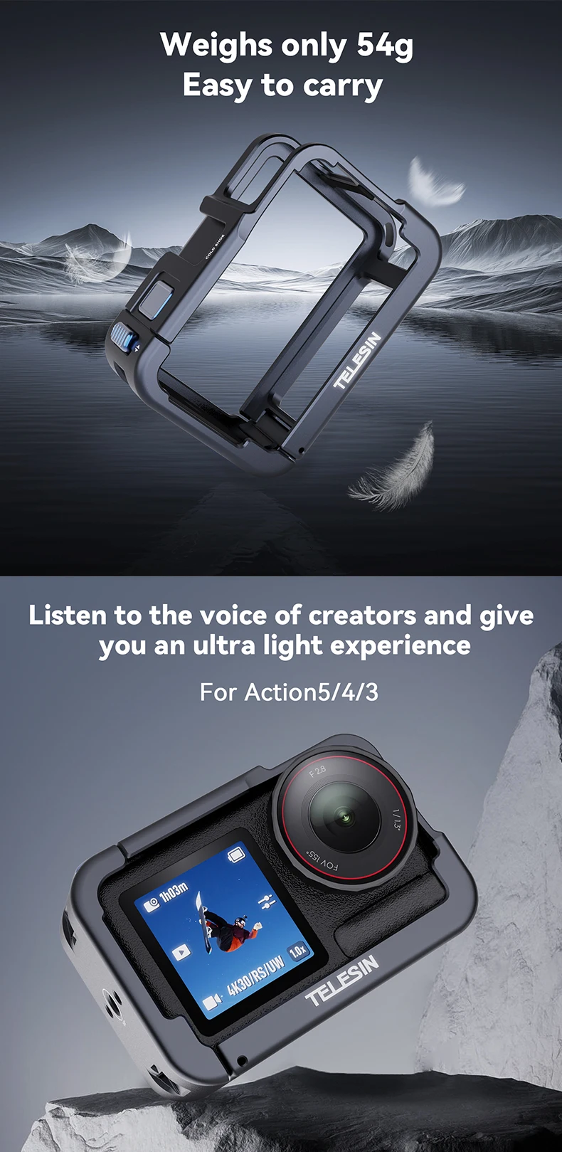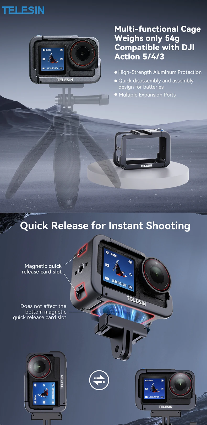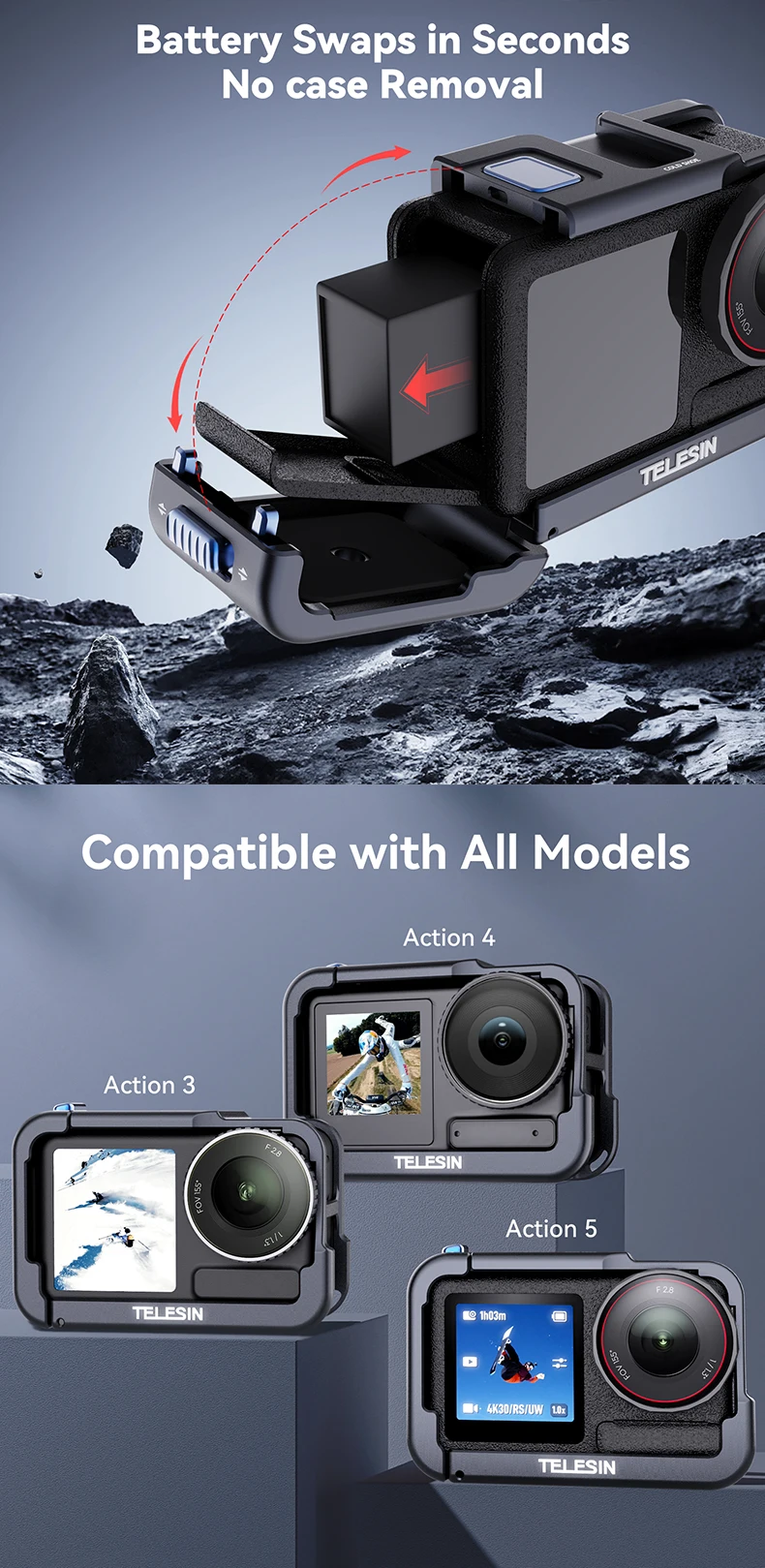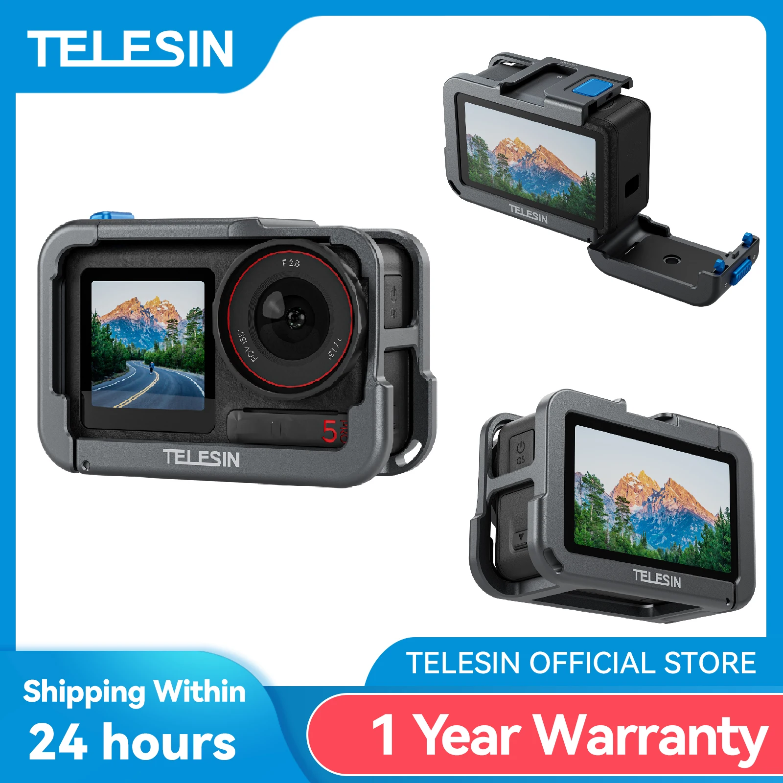 Comprar TELESIN-funda con marco de aleación de aluminio para DJI OSMO Action 3 4 5Pro, carcasa protectora de zapato de doble clod para DJI Action 3 4 5pro