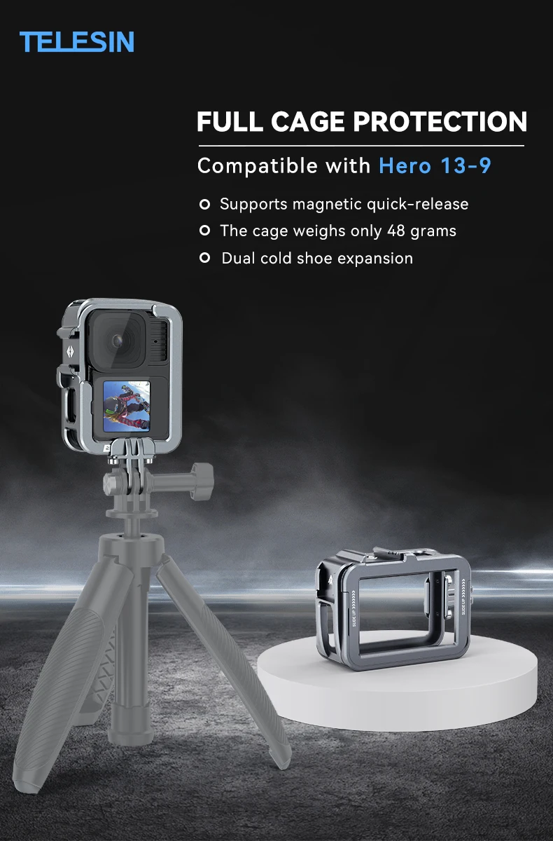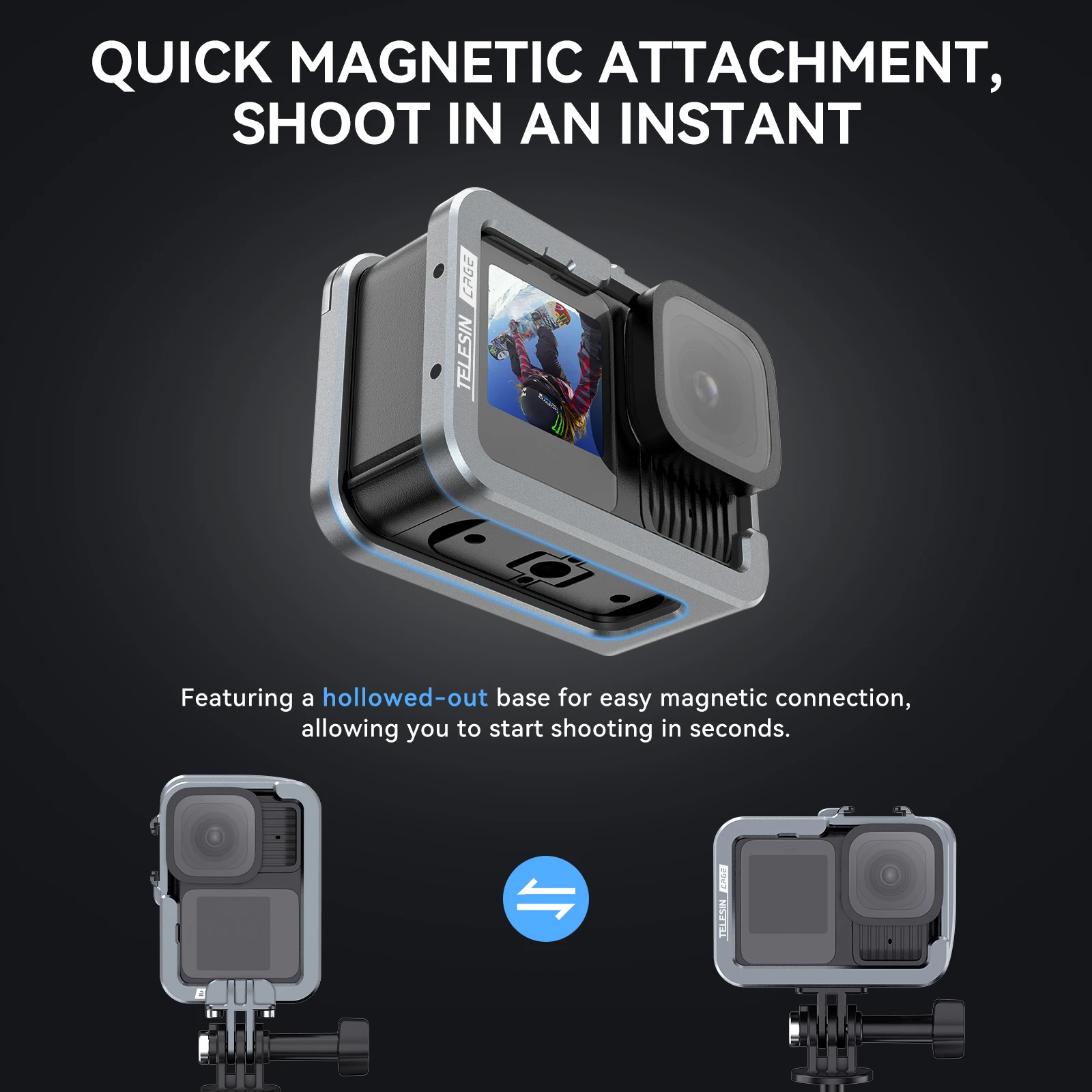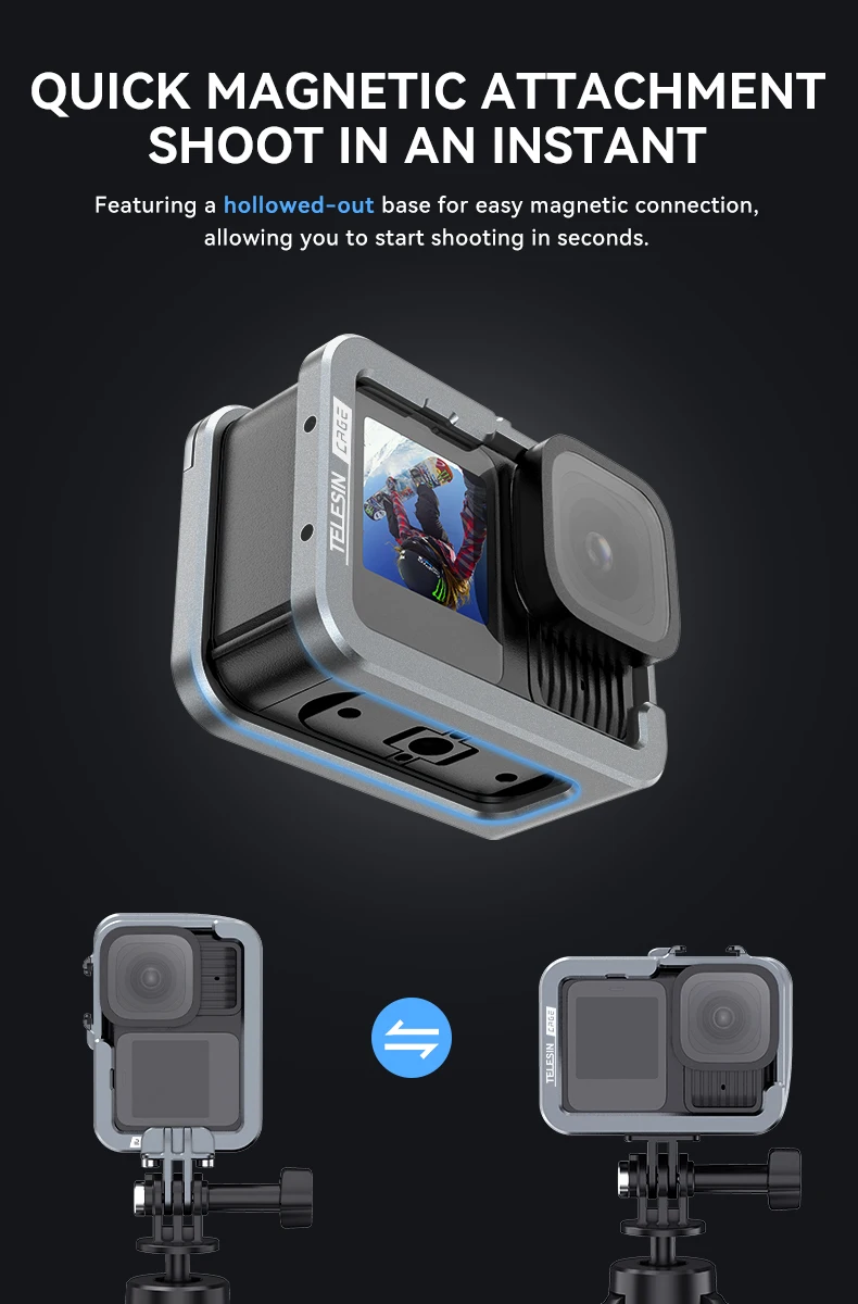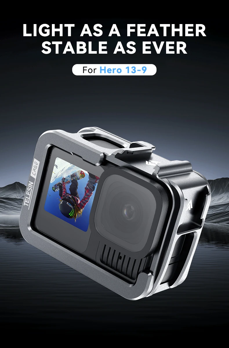 Comprar TELESIN-funda con marco de aleación de aluminio para Gopro Hero 9 10 11 12 13, carcasa protectora de bajo peso con disparo Vertical para Gopro Hero