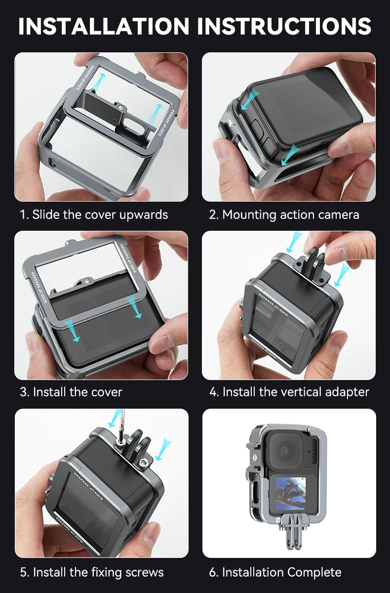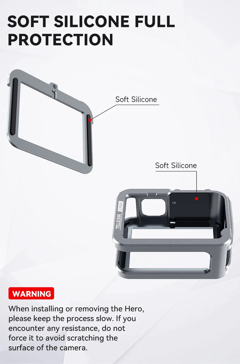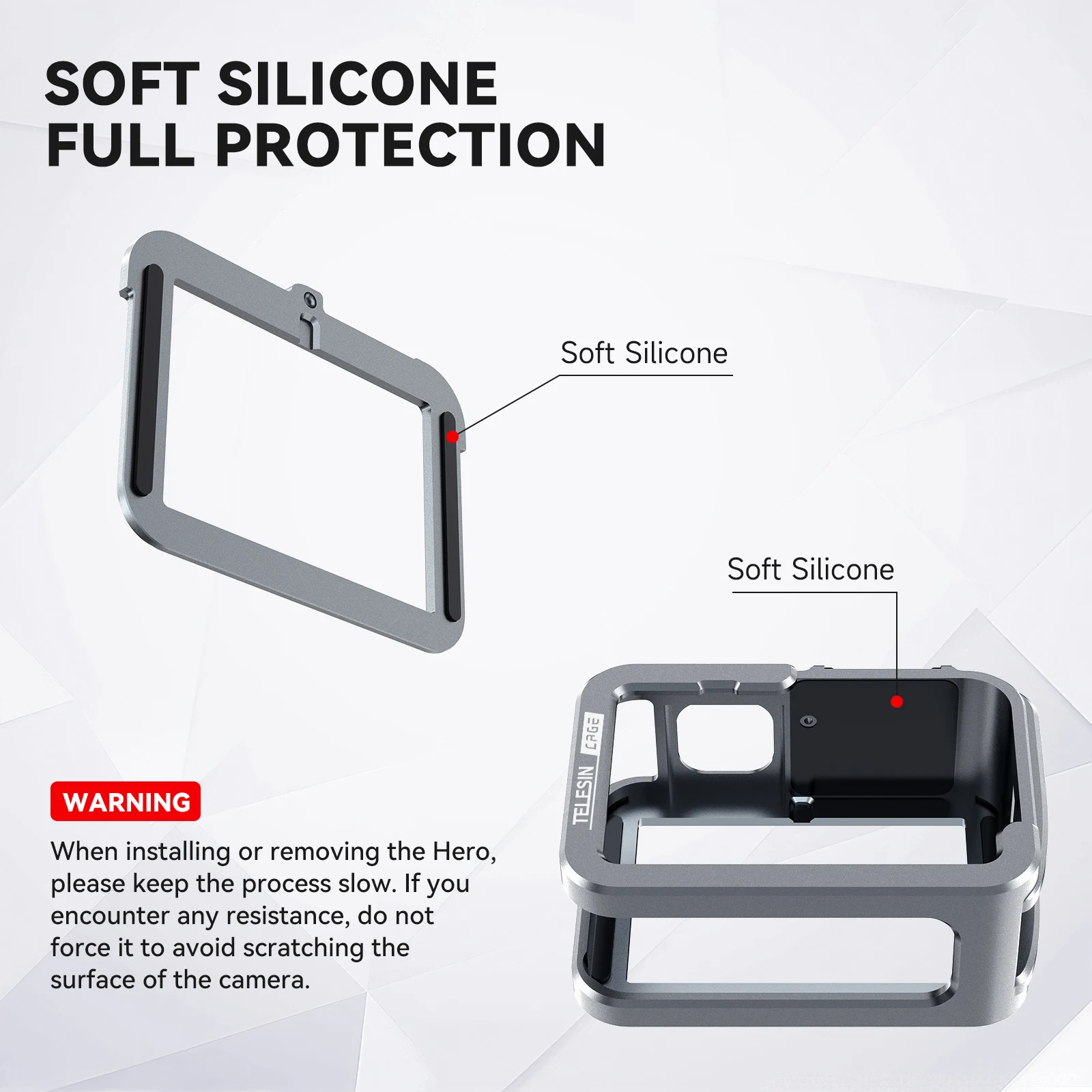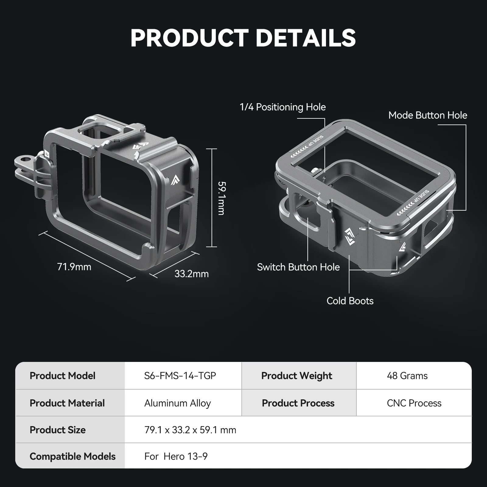 Comprar TELESIN-funda con marco de aleación de aluminio para Gopro Hero 9 10 11 12 13, carcasa protectora de bajo peso con disparo Vertical para Gopro Hero