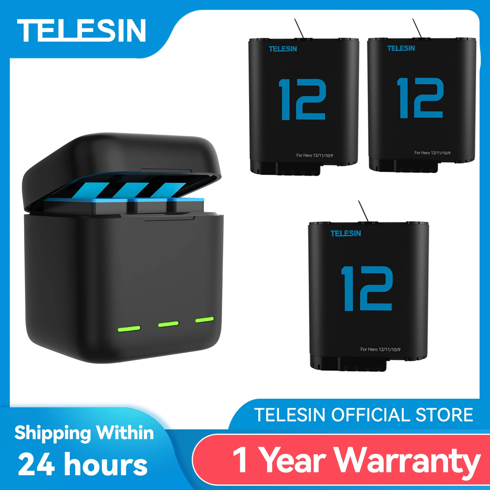 Comprar TELESIN para GoPro 9 10 11 12 batería 1750 mAh 3 vías caja de cargador de luz LED tarjeta TF almacenamiento de batería para GoPro Hero 9 10 11 12