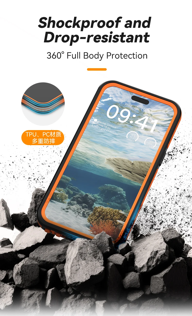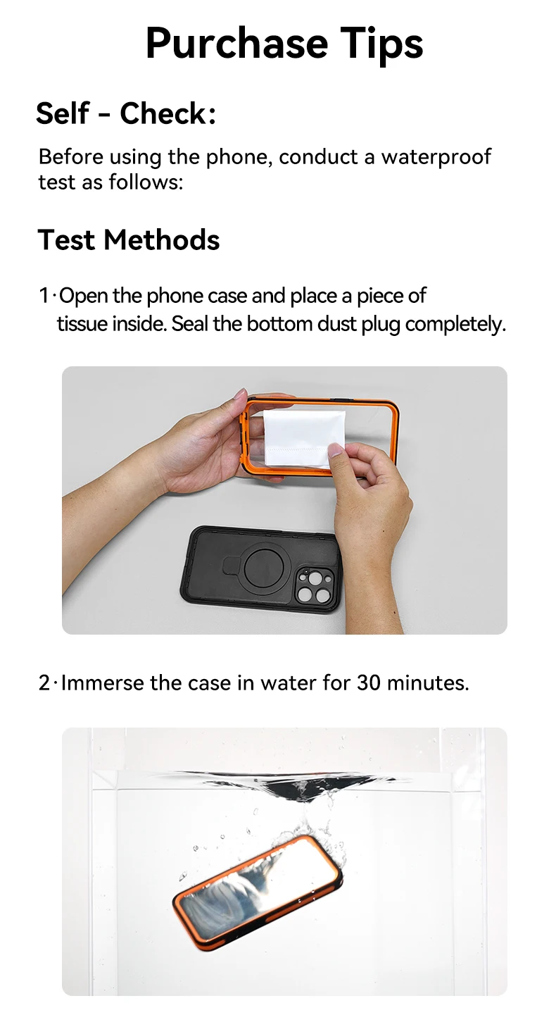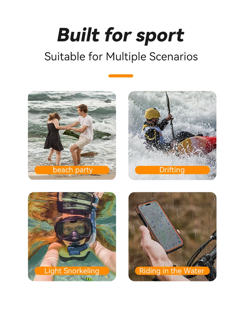【Varios escenarios, fácil de manejar】IP68 a prueba de agua puede garantizar que 2 metros durante 1 hora sin entrada de agua, fácil de hacer frente a una variedad de escenarios de uso: fiesta en la piscina, tiro submarino, rafting acuático, conducción todoterreno, etc.Al mismo tiempo, protector de pantalla incorporado para evitar que la pantalla del teléfono se raye y al mismo tiempo proporciona un tacto suave (viene con su propia película protectora HD PET), brindándole una excelente experiencia táctil.El protector de lente de cámara de vidrio templado especialmente diseñado brinda una protección adecuada para la cámara de su teléfono importante, preservando los píxeles originales de la cámara de su teléfono sin interferir con el uso del flash.