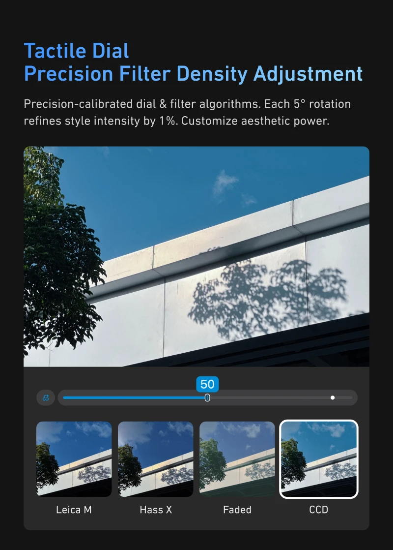 Sistema modular magnético– Compatible con filtros magnéticos y accesorios, incluida una luz de relleno opcional con brillo ajustable de tres colores y espejo incorporado.