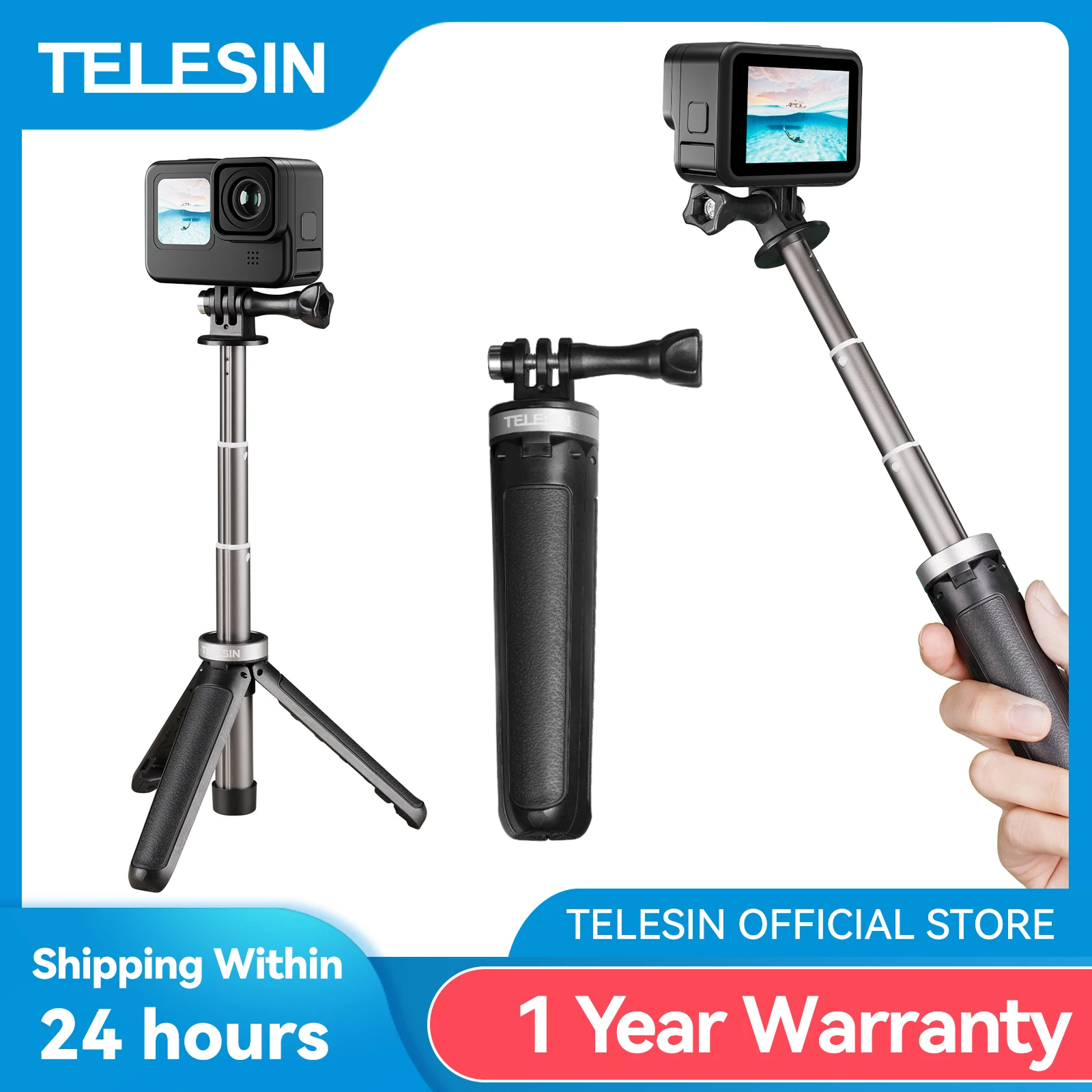 Comprar TELESIN-Mini trípode portátil de plástico, palo Selfie, longitud ajustable para GoPro Hero 5, 6, 7, 8, 9, 10, 11, 12, DJI Osmo Action Insta360