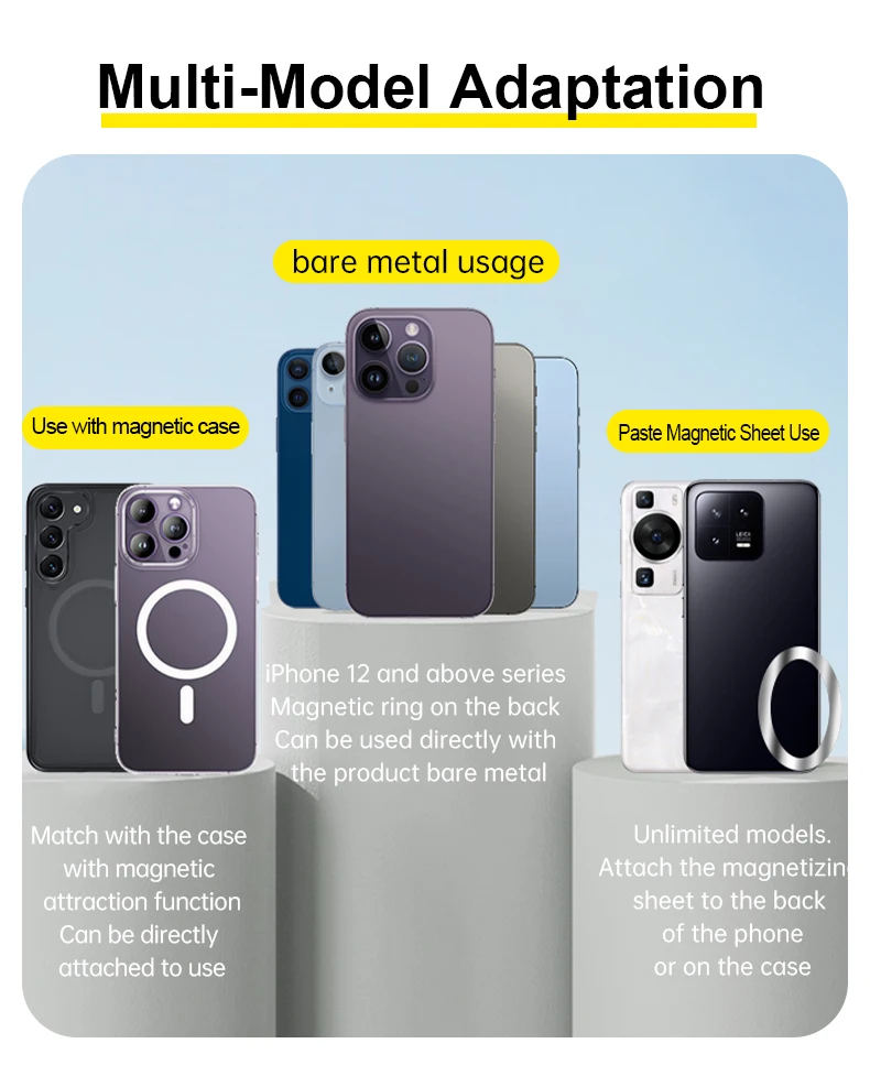 Para iPhone 12 y series superiores Anillo magnético en la parte posterior Se puede usar directamente con el producto de metal desnudo.
