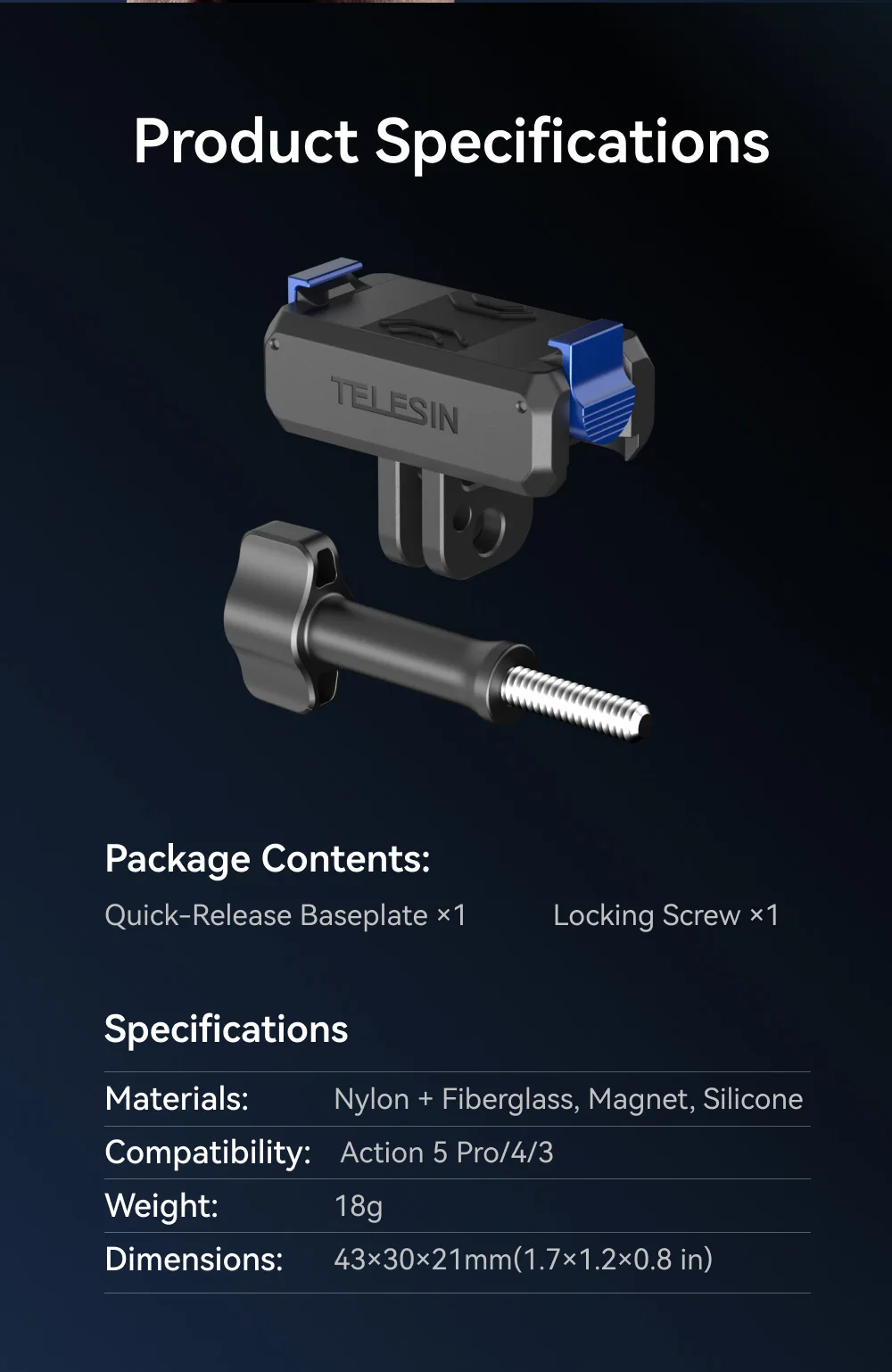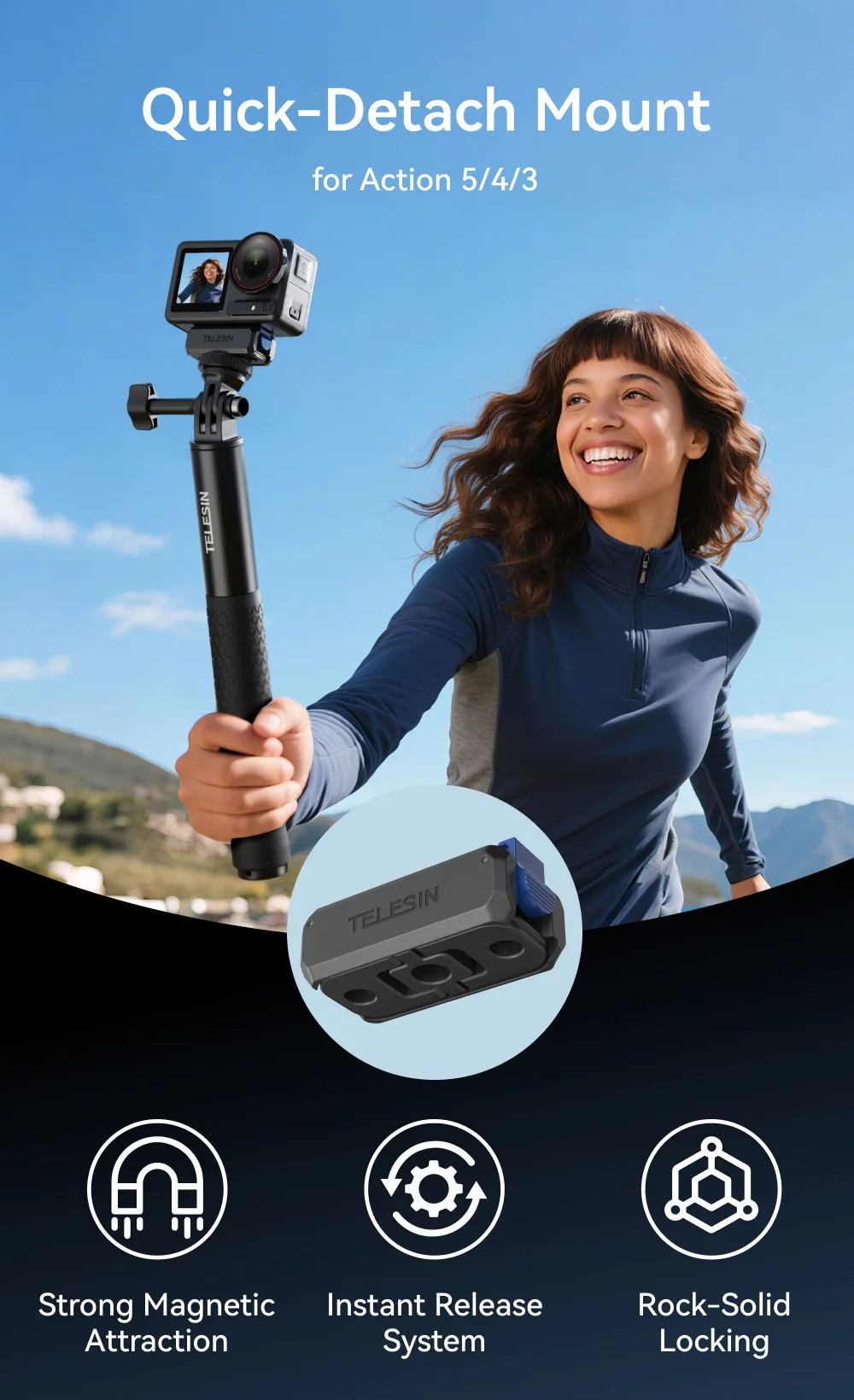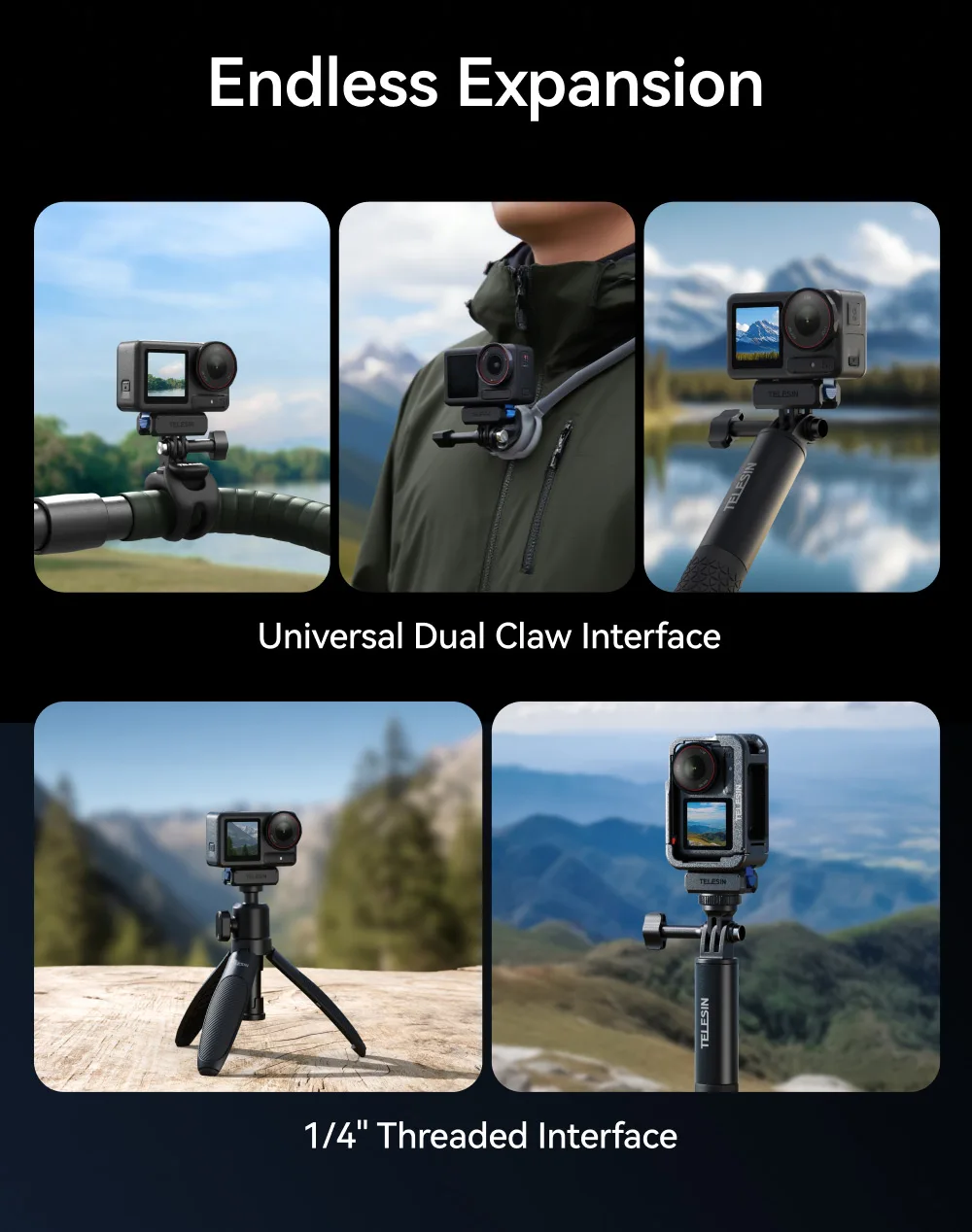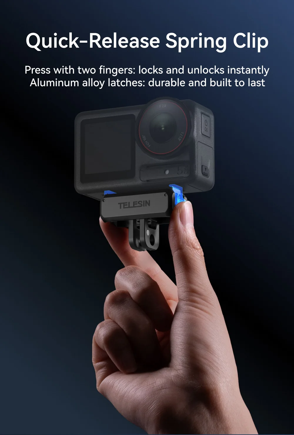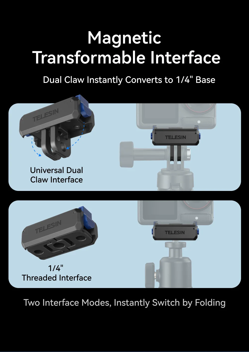 Adaptador magnético de dos garras TELESIN de liberación rápida para DJI Osmo Action 5/4/3 Pro