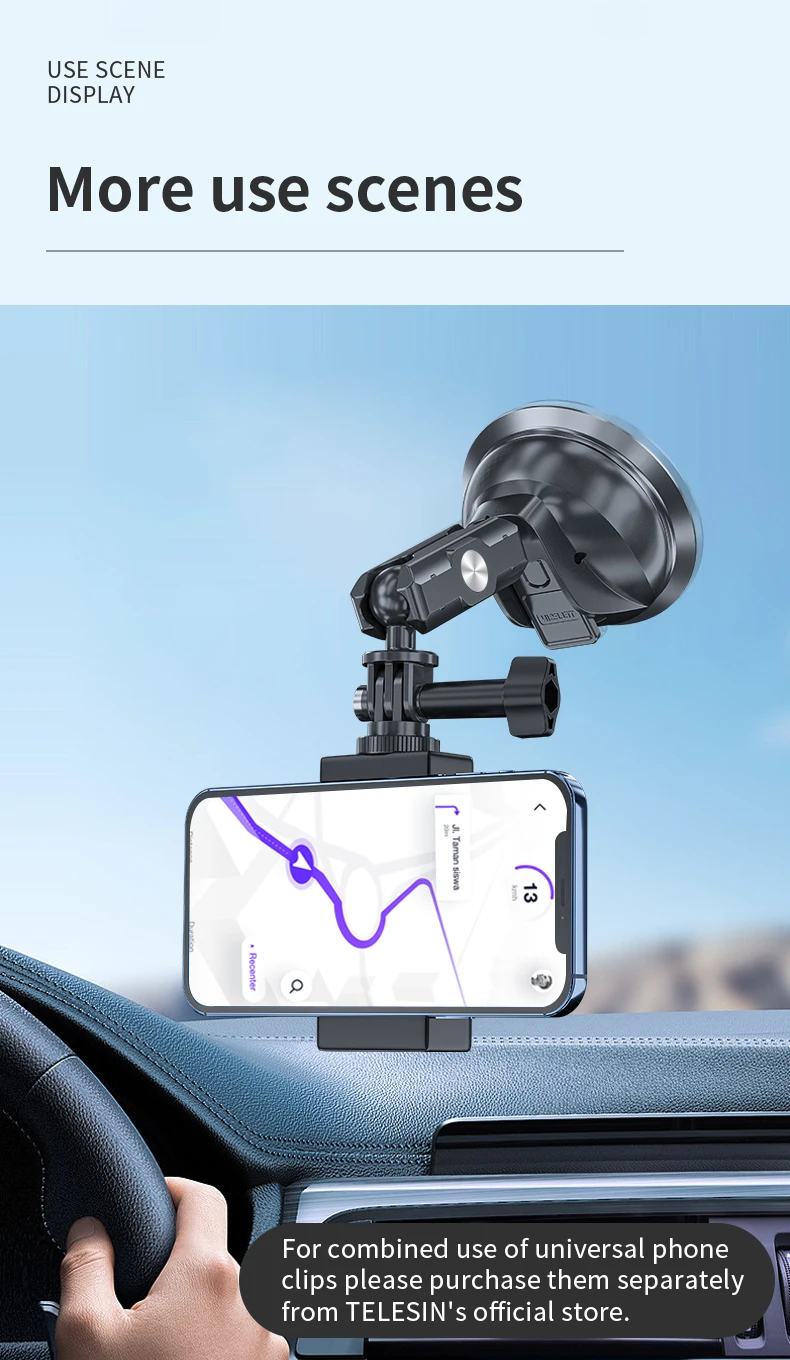 TELESIN soporte para teléfono de coche ventosa 360 ° ajustable 1/4 adaptador estándar para GoPro 11 10 9 Insta360 Osmo Action SJCAM teléfono móvil
