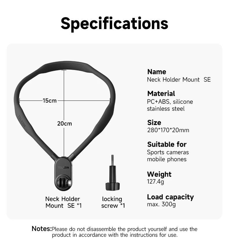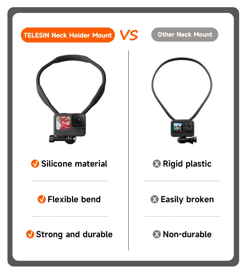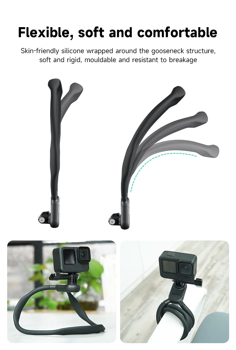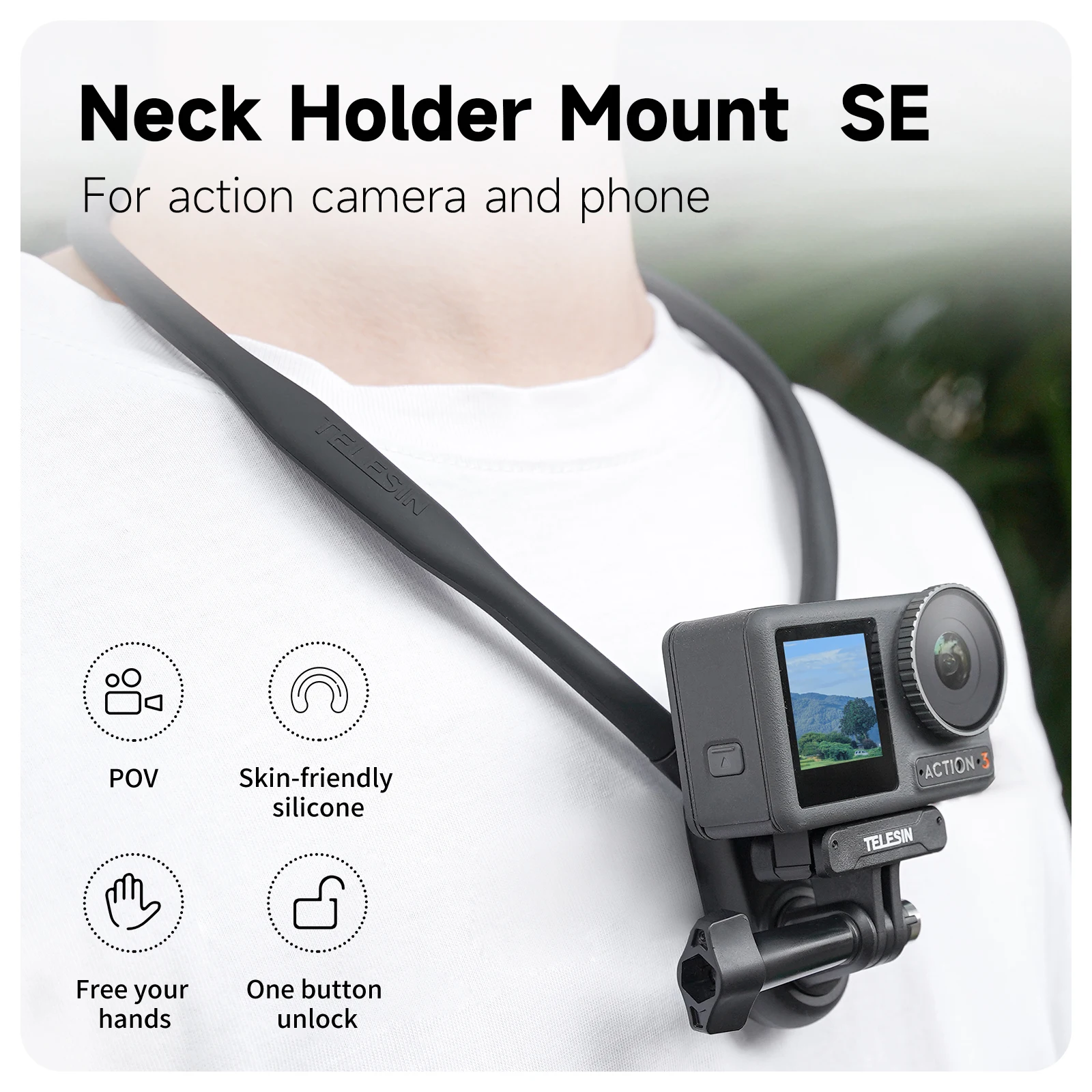 Comprar TELESIN-Soporte de cuello para Cámara de Acción, accesorio de silicona para GoPro Hero 11, 10, 9, 8, 7, 6, 5, Insta360, DJI Osmo Action