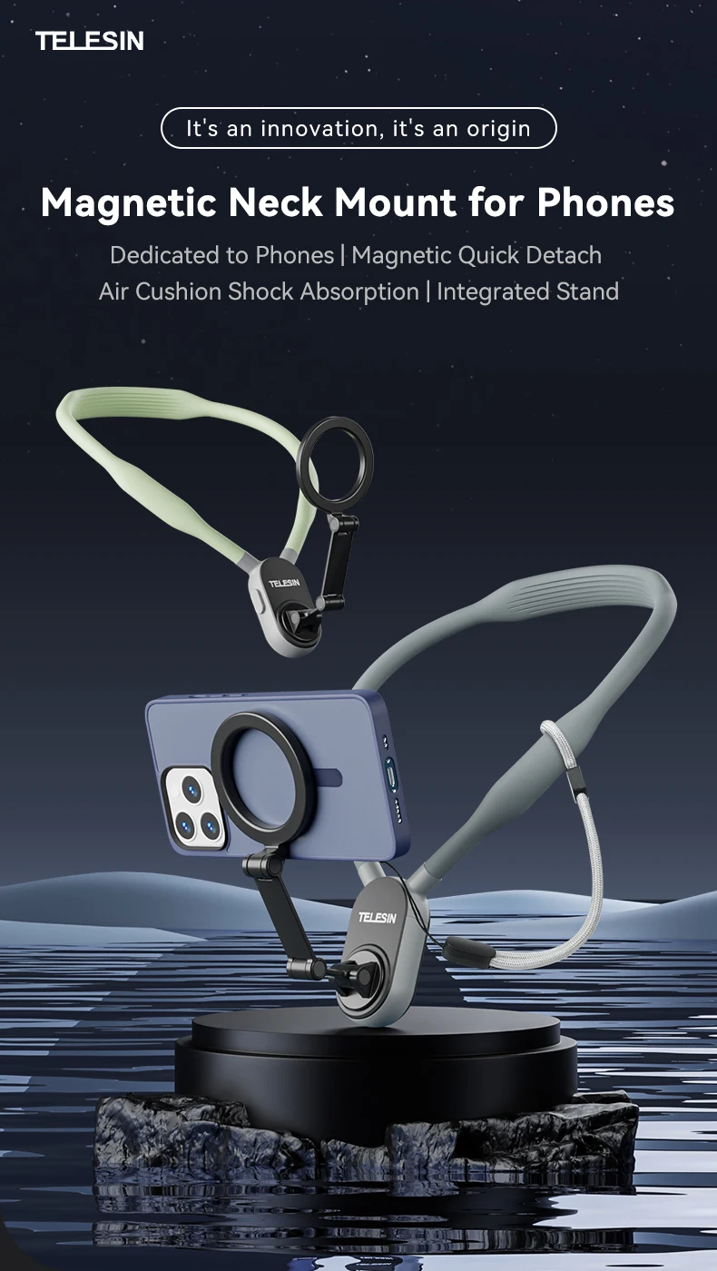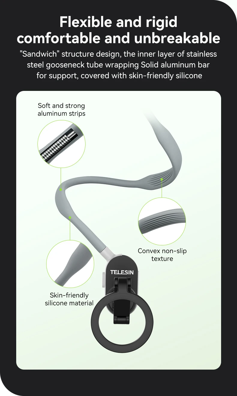 Comprar TELESIN-Soporte de cuello magnético de silicona, sujeción de liberación rápida para Iphone 15, 14, 13, 12, 11, 10, SAMSUNG, HUAWEI, XIAOMI, accesorios para teléfono
