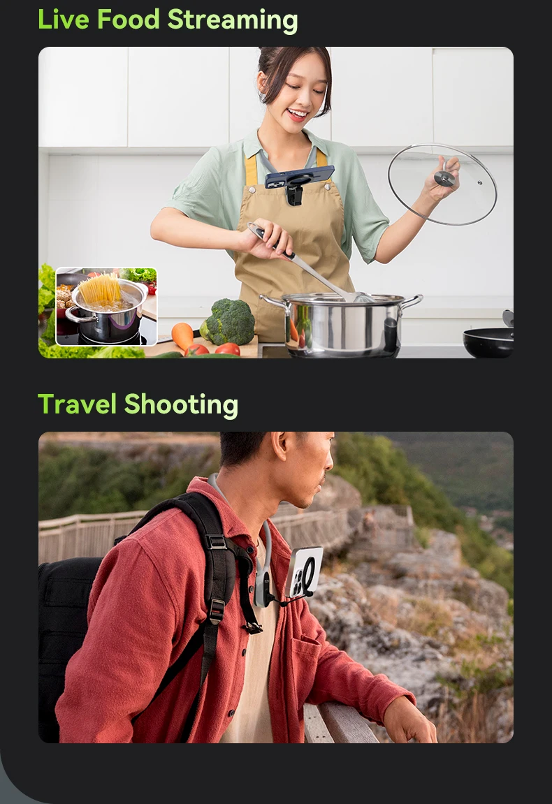 Satisface a los creadores de contenido de vídeo corto con modos de disparo versátiles: Paisaje, Retrato, sobrecarga y ángulo bajo.
