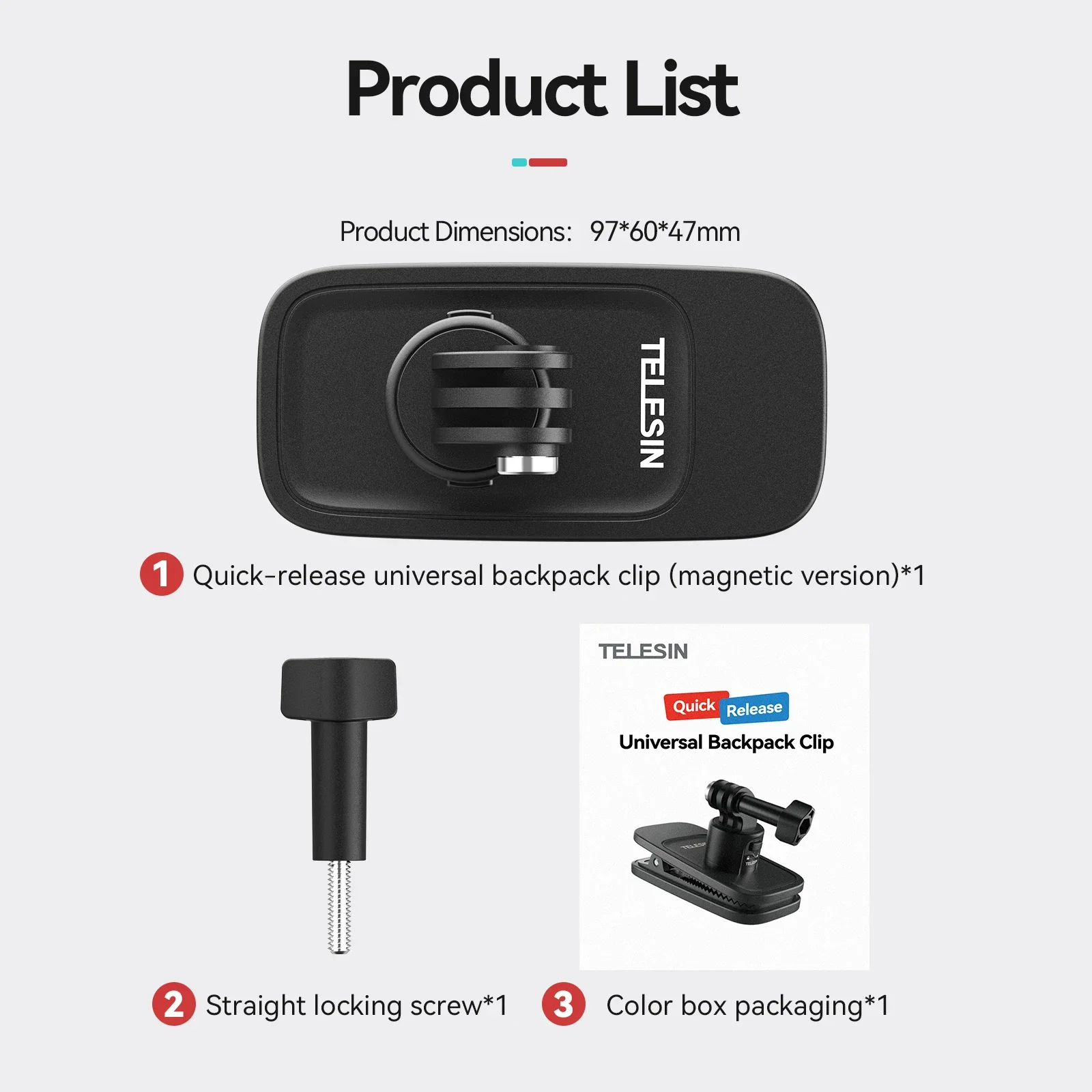 Comprar TELESIN Soporte magnético con clip para mochila con adaptador de liberación rápida para GoPro Hero 12 11 10 9, Osmo Action 4/3, Insta360 Ace Pro