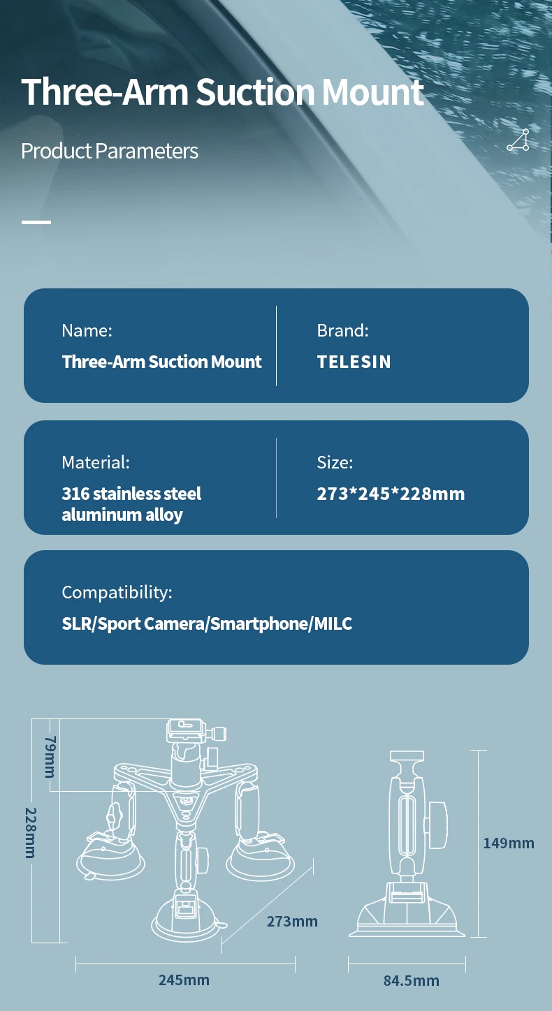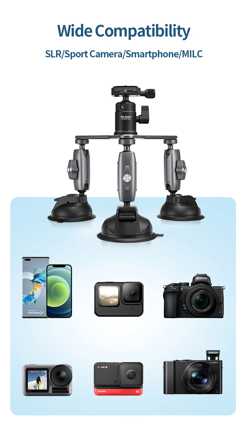 Comprar TELESIN-Soporte de trípode con ventosa para coche, soporte de rotación de 360 ° para Canon, Sony, GoPro Hero, Insta360, DJI, Osmo Action