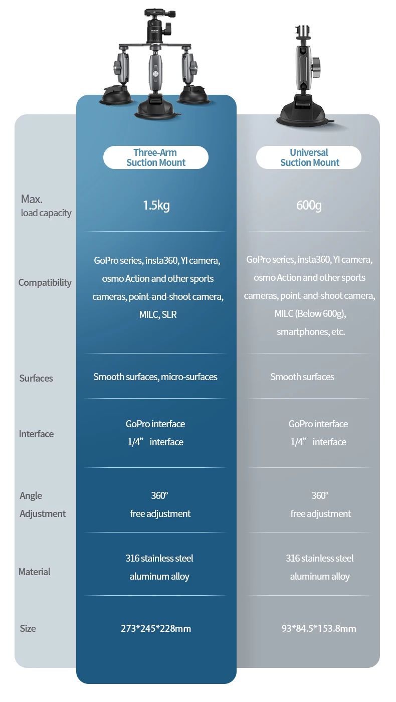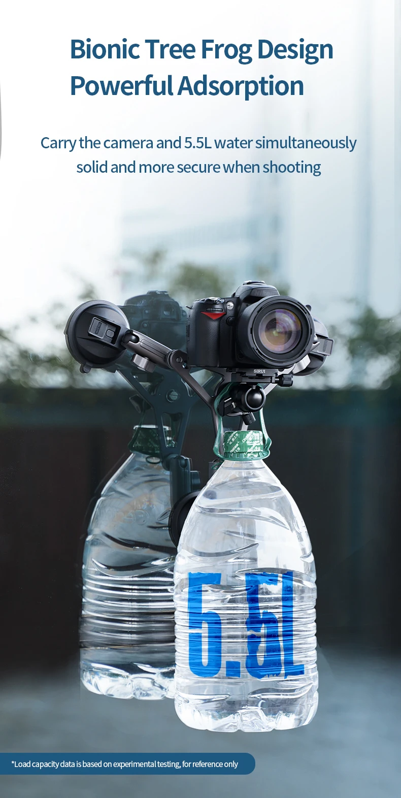 1. Ventosa de trípode, diseño "Bionic Frog Palm", fuerte succión y estable, uso en una superficie lisa, plana y regular. Presione el botón puede hacer la diferencia de presión, el soporte de la ventosa está más firmemente unido a cualquier superficie lisa.
