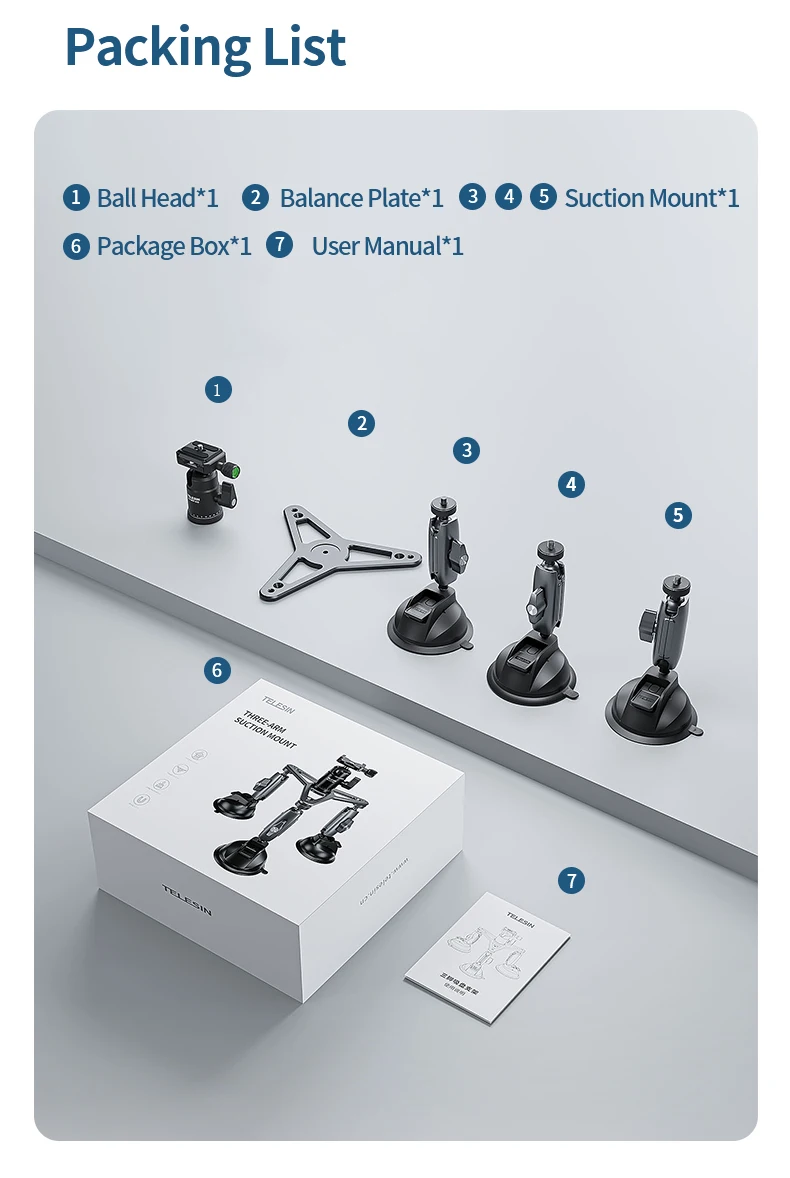 5. Se puede desmontar como 3 soportes de succión y cabezal de bola de cámara para su uso, más versátil, más formas de usar.
