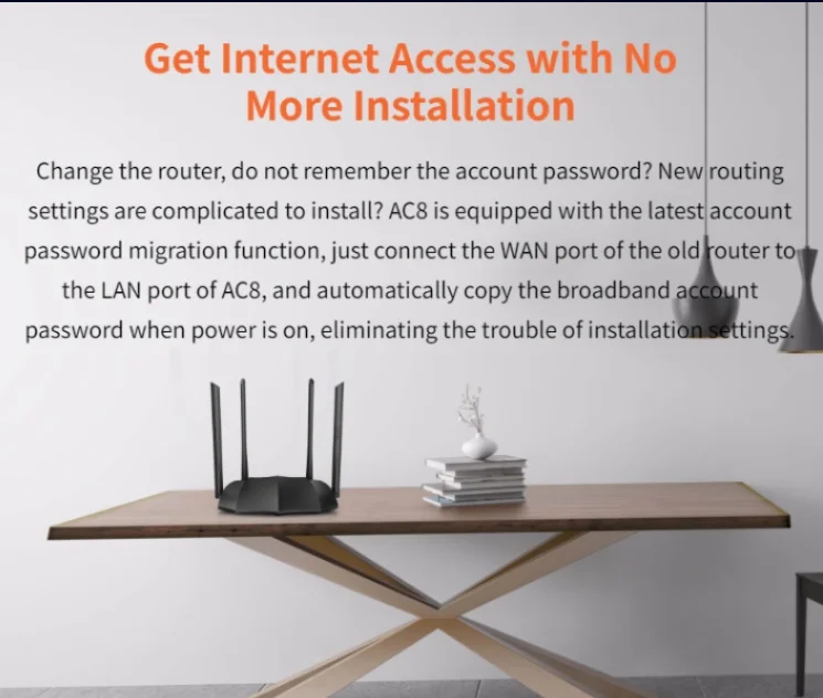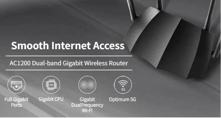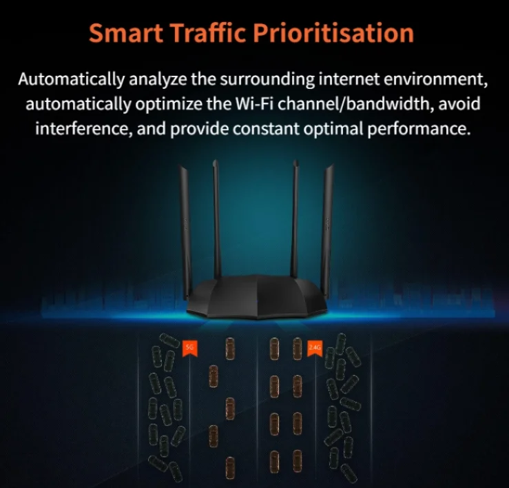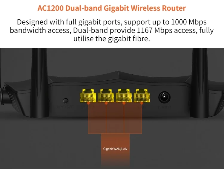 AC8 es un enrutador inalámbrico Gigabit de doble banda especialmente diseñado para familias con acceso a fibra. Equipado con puertos Gigabit para admitir acceso de ancho de banda de hasta 1000 Mbps. La banda dual proporciona una frecuencia de 1167Mbps, utiliza completamente la fibra Gigabit. Este enrutador está equipado con una CPU de 28nm 1 GHz para proporcionar un mejor rendimiento.