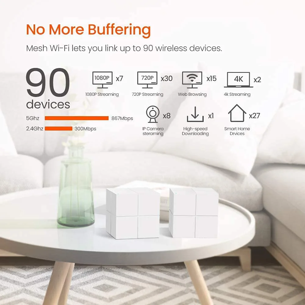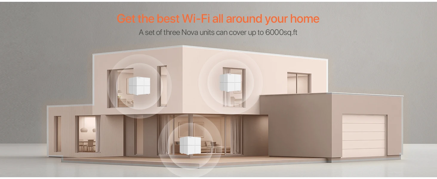 Alta capacidad y flexibilidad total: Alimentado por la tecnología MU-MIMO y Beamforming, el rápido sistema Wi-Fi de malla Nova Dual Band AC1200 proporciona una red Wi-Fi de alta velocidad para todos sus dispositivos y brinda una experiencia sin demoras para hasta 90 dispositivos.