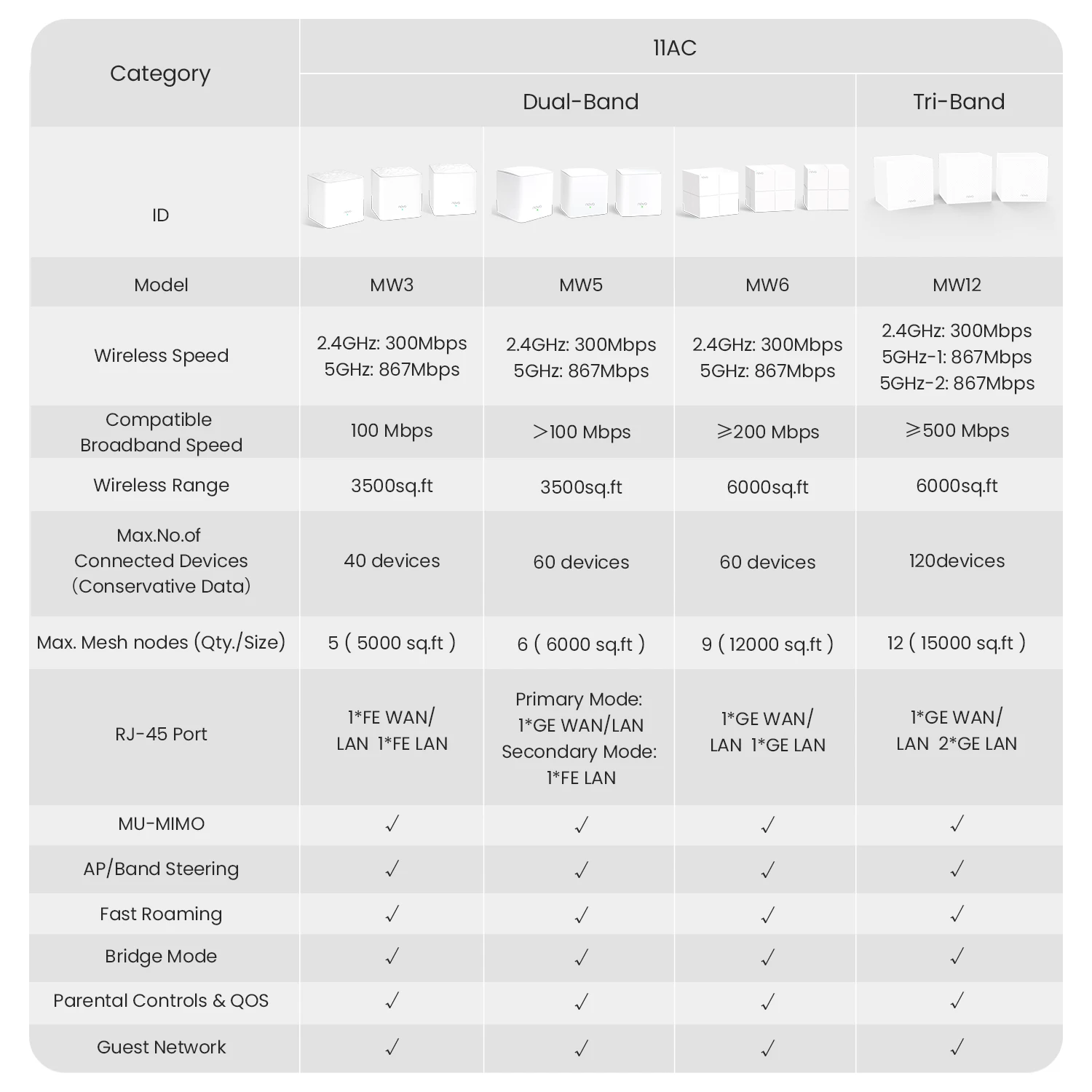 Nota: Este MW6 es un enrutador Wifi5 versión, solo puede funcionar con MW3, MW5, MW12, pero no puede funcionar con Wifi6 EM3, EM12, EM15 Pro.