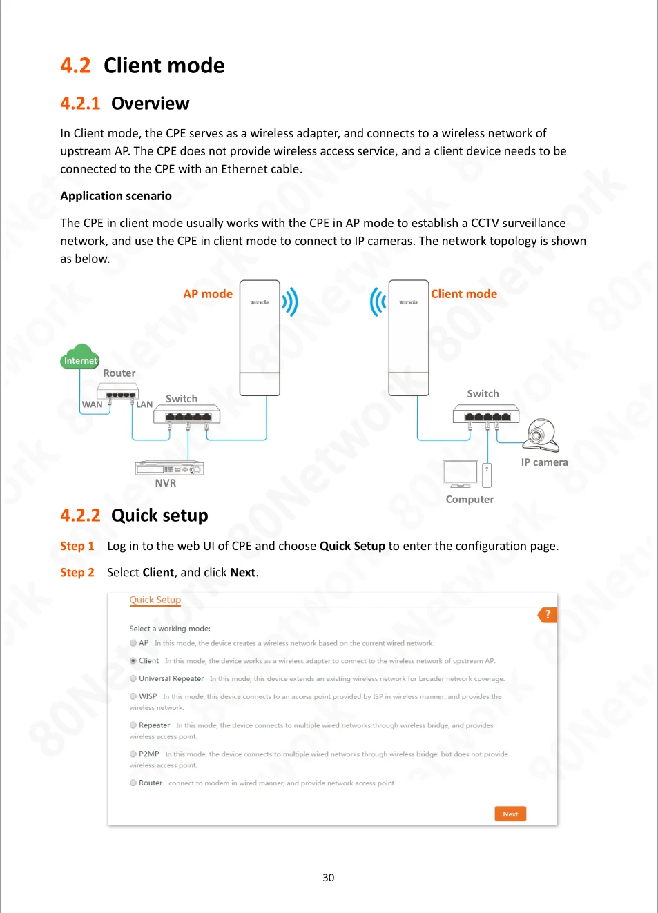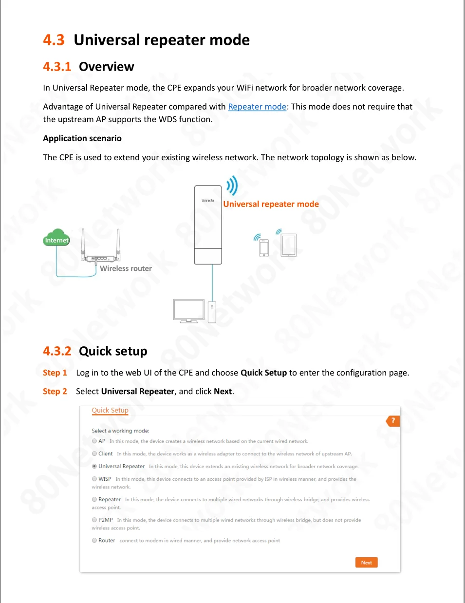 • Compatible con el modo de funcionamiento AP, estación y WISP