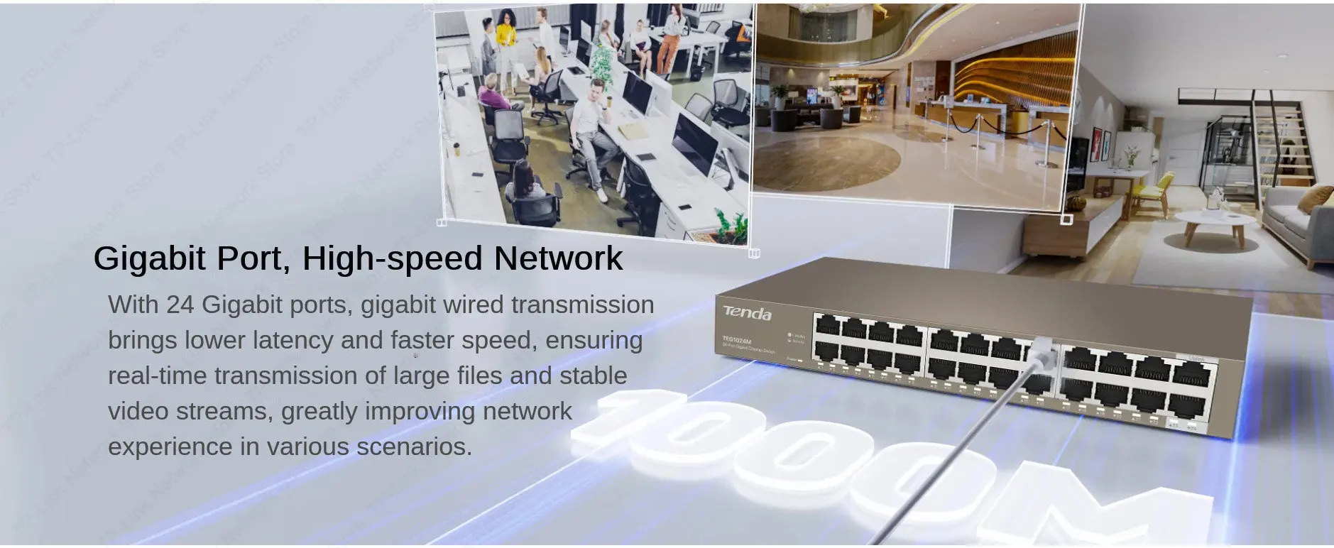 Comprar Tenda TEG1024D Conmutador Gigabit Ethernet de 24 puertos Conmutador de red Ethernet 10/100/1000Mpbs Auto MDI/MDIX RJ45 Hub