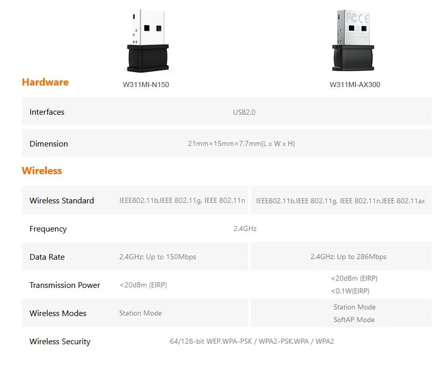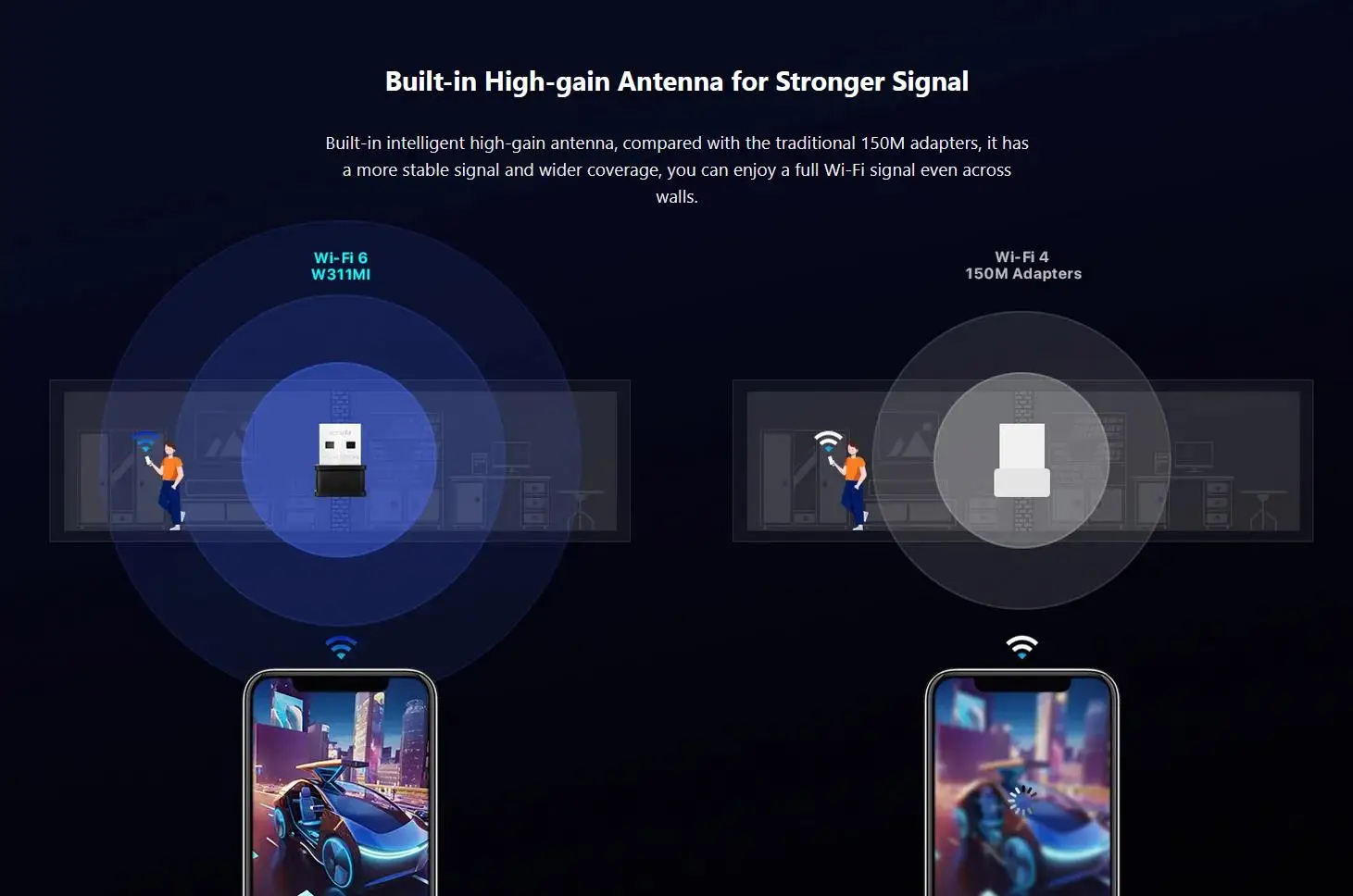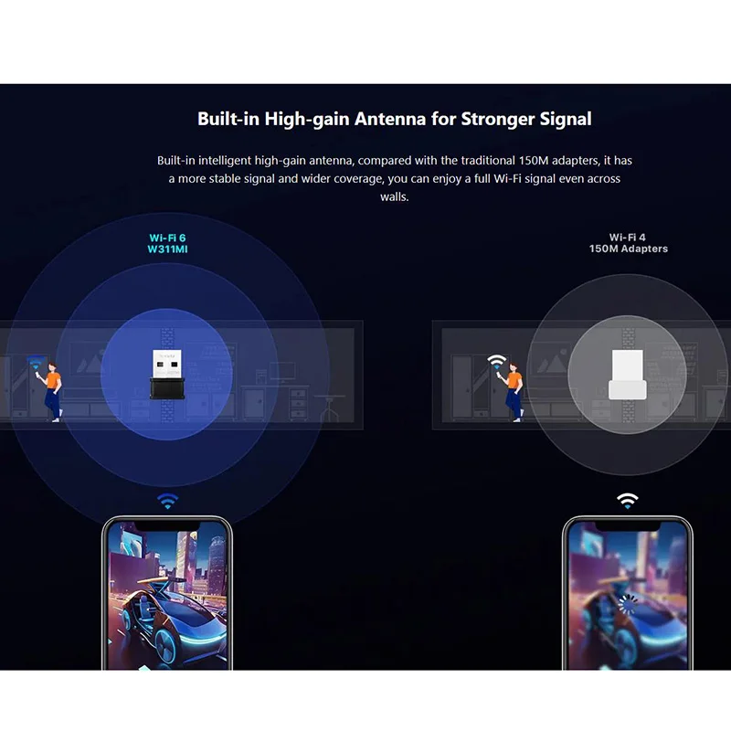 W311MI V6.0 AX300 Wi-FVi 6 Adaptador inalámbrico Nano USB Adaptadores USB para el hogar W311MI v6.0