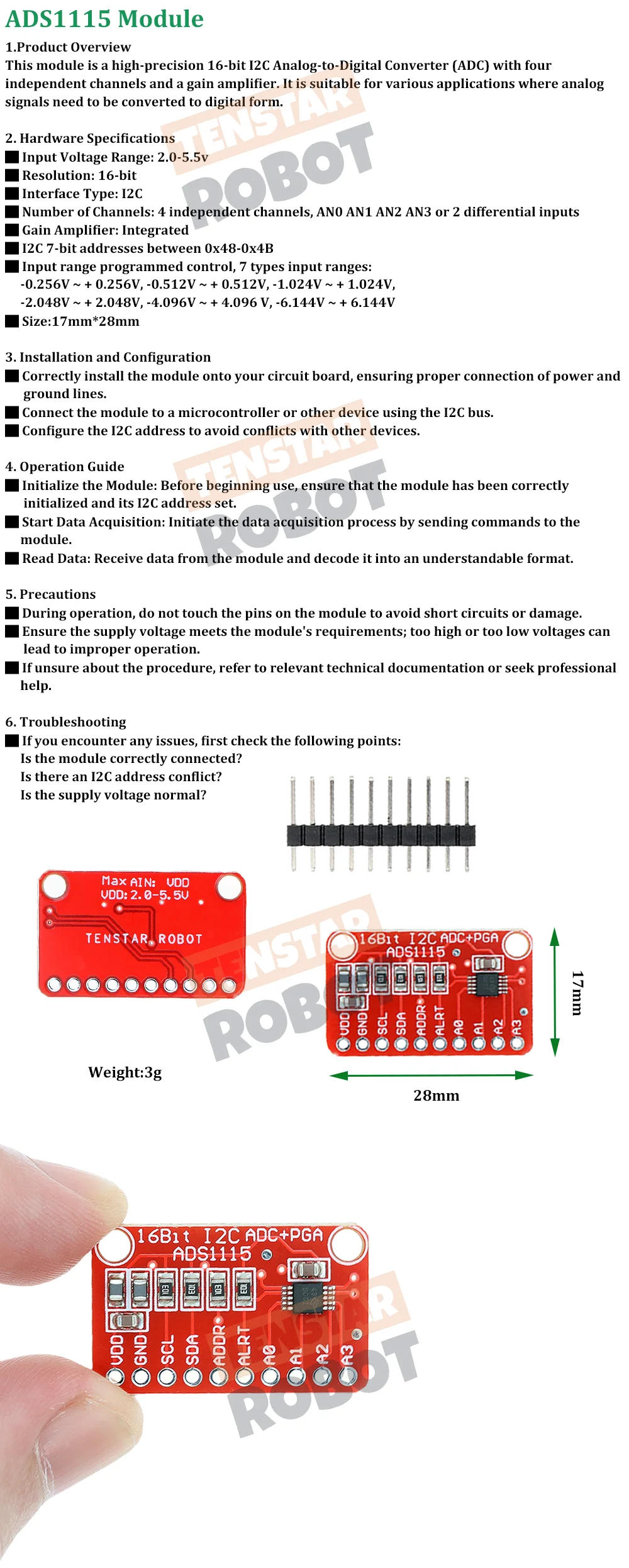 Módulo ADC ADS1115 de 16 bits. Buena calidad. Recibido bien empaquetado para una recepción perfecta. Aún no probado.
