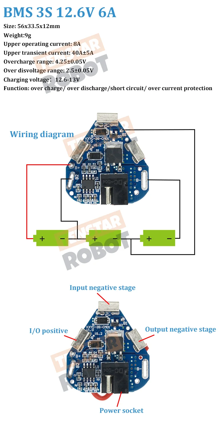 TENSTAR 3 uds BMS 3S 12,6 V 6A Li-ion Placa de protección de batería de litio 18650 ecualizador equilibrador de banco de energía para taladro eléctrico