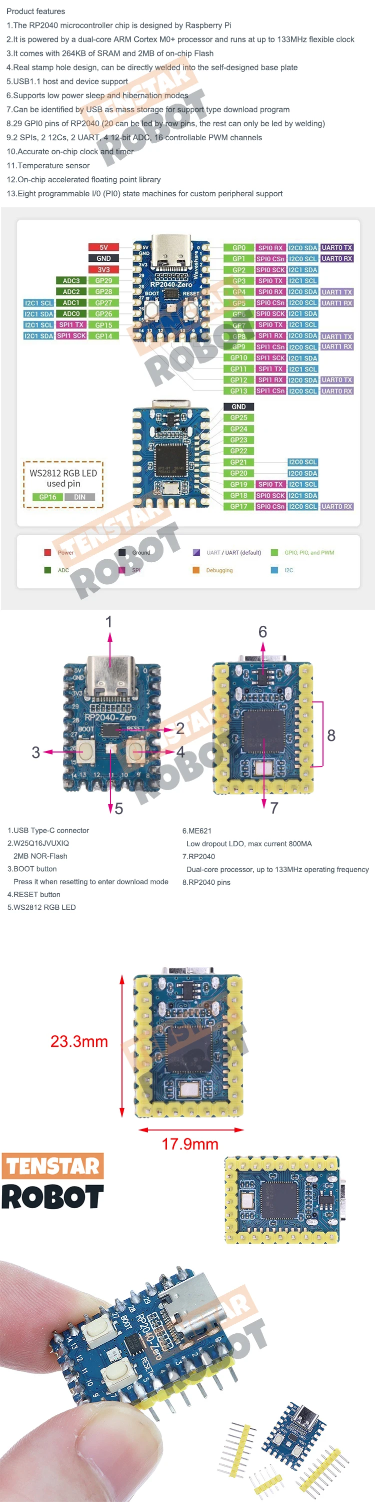• Microcontroller RP2040-Zero :El microcontrolador RP2040-Zero es compatible con Raspberry Pi, lo que facilita la programación y el desarrollo de proyectos.