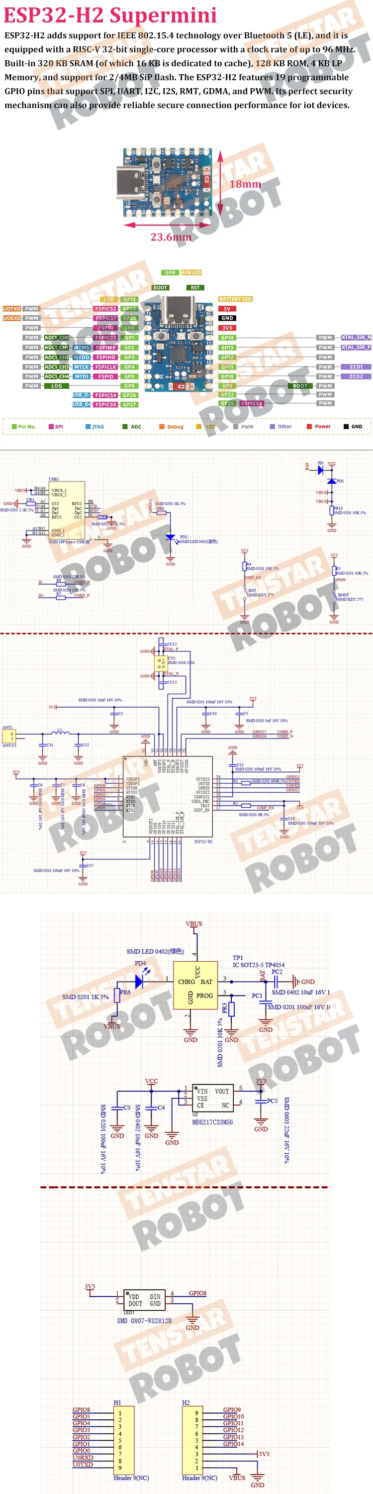 TENSTAR ROBOT ESP32-H2 SuperMini Placa de desarrollo Bluetooth 5 microcontrolador programación tablero de aprendizaje azul