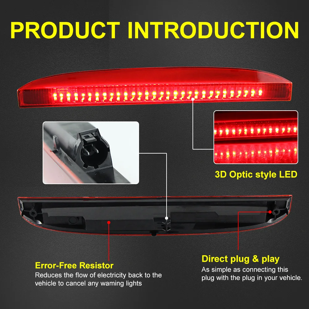 6.Alta calidad: el tercer freno de alto nivel está hecho principalmente de plástico ABS para máxima durabilidad, alta confiabilidad, a prueba de golpes, buena disipación de calor, antioxidante y anticorrosión.