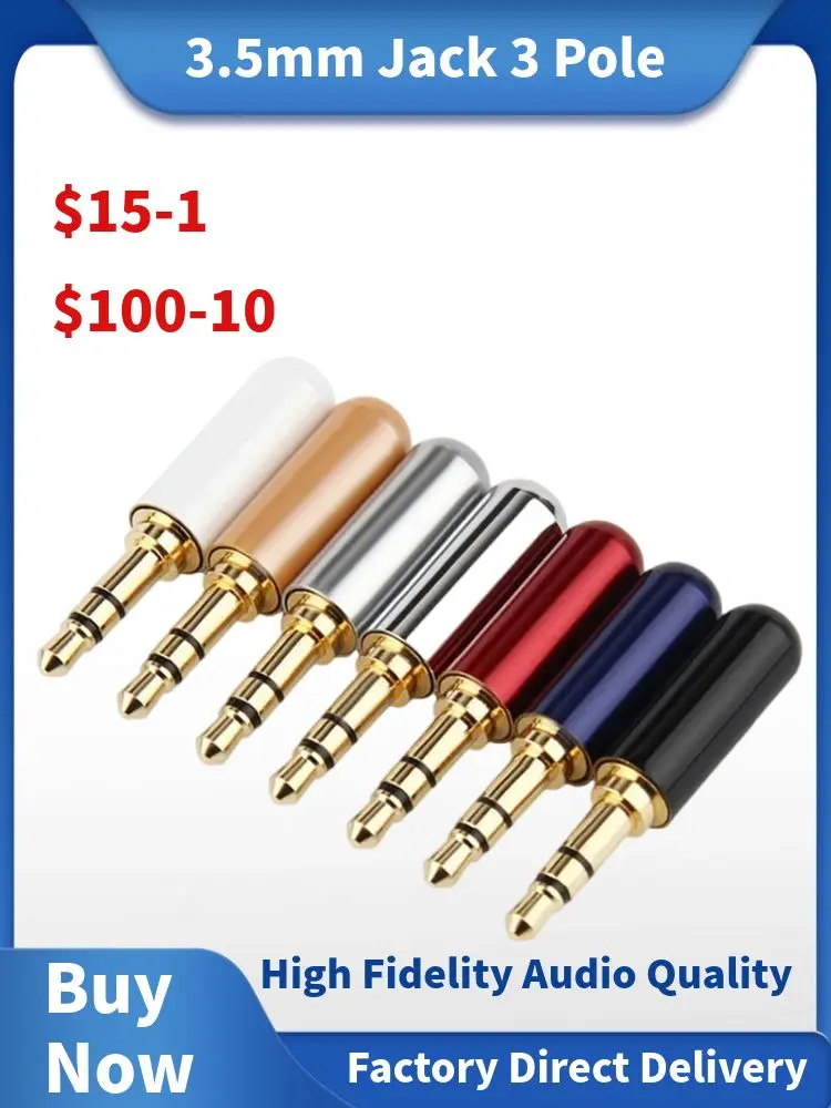 Comprar Terminal de altavoz de 3 Polos para soldar, Conector de enchufe macho de 3,5mm, chapado en oro, de 7 colores carcasa de Metal, 4 piezas, 3,5