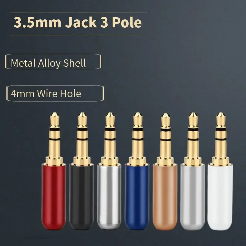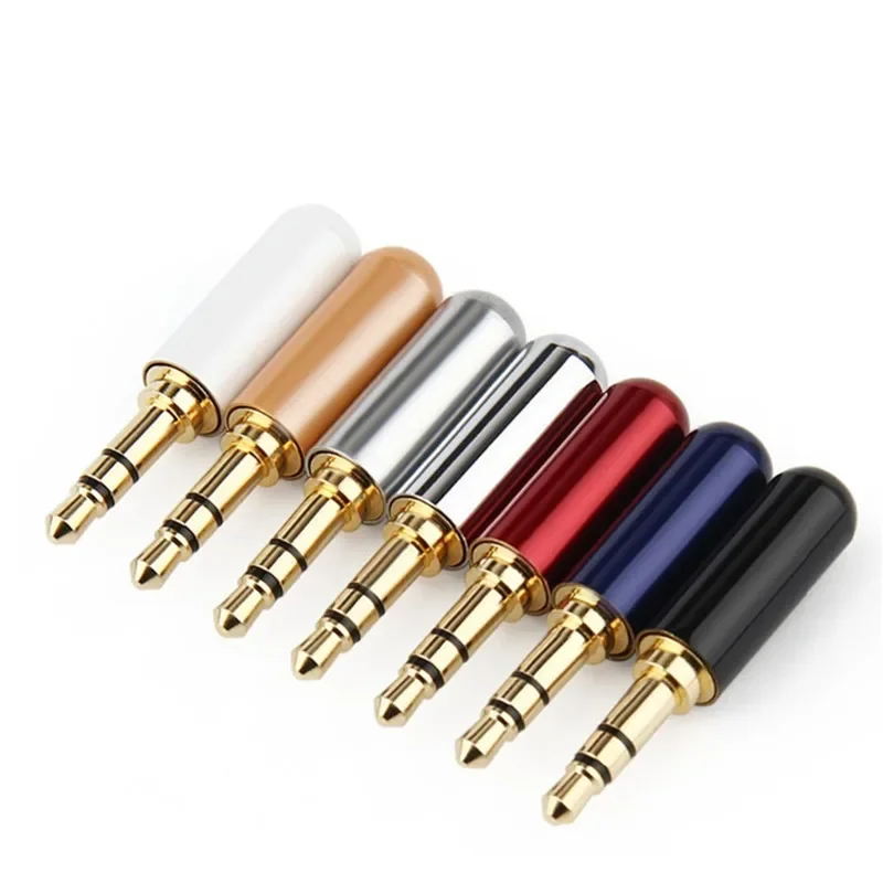Comprar Terminal de altavoz de 3 Polos para soldar, Conector de enchufe macho de 3,5mm, chapado en oro, de 7 colores carcasa de Metal, 4 piezas, 3,5