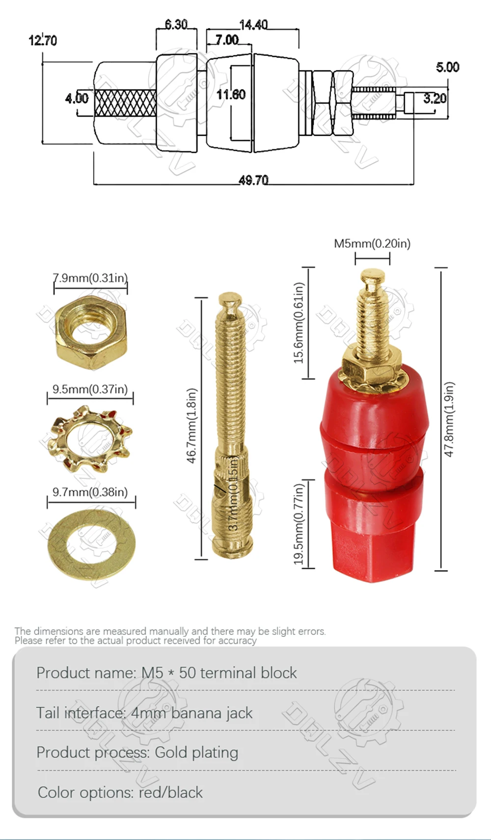 Comprar Terminal de Audio amplificador de corriente grande de cobre chapado en oro, conector adaptador de poste de unión de latón con conector Banana de 4mm