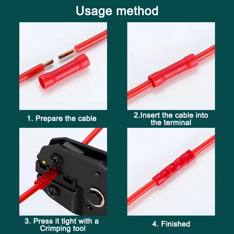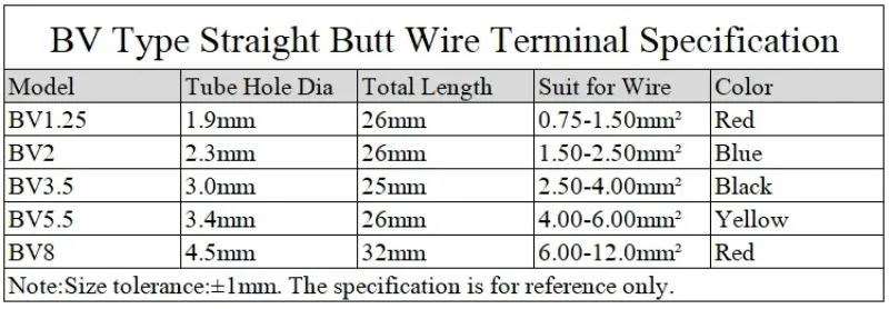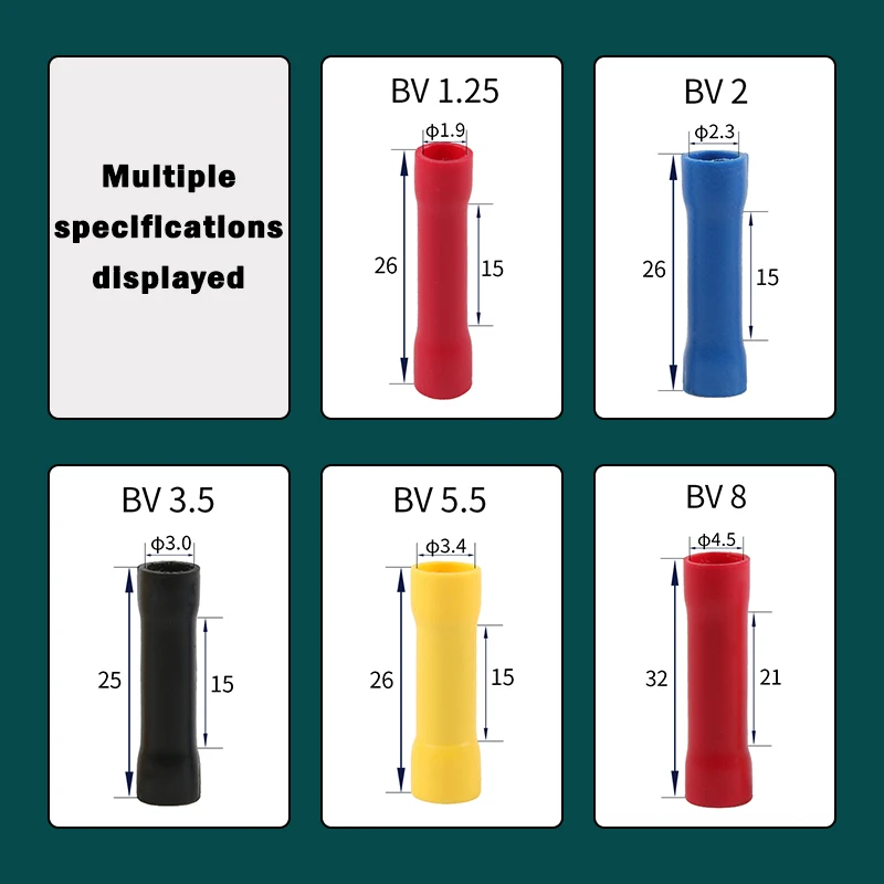 Terminal de Cable BV1.25 BV2 BV3.5 BV5.5 BV8, empalme a tope recto, engarzado, tubo de cobre aislado de PVC, conexión de Cable de prensa en frío, 10 ~ 100 Uds.