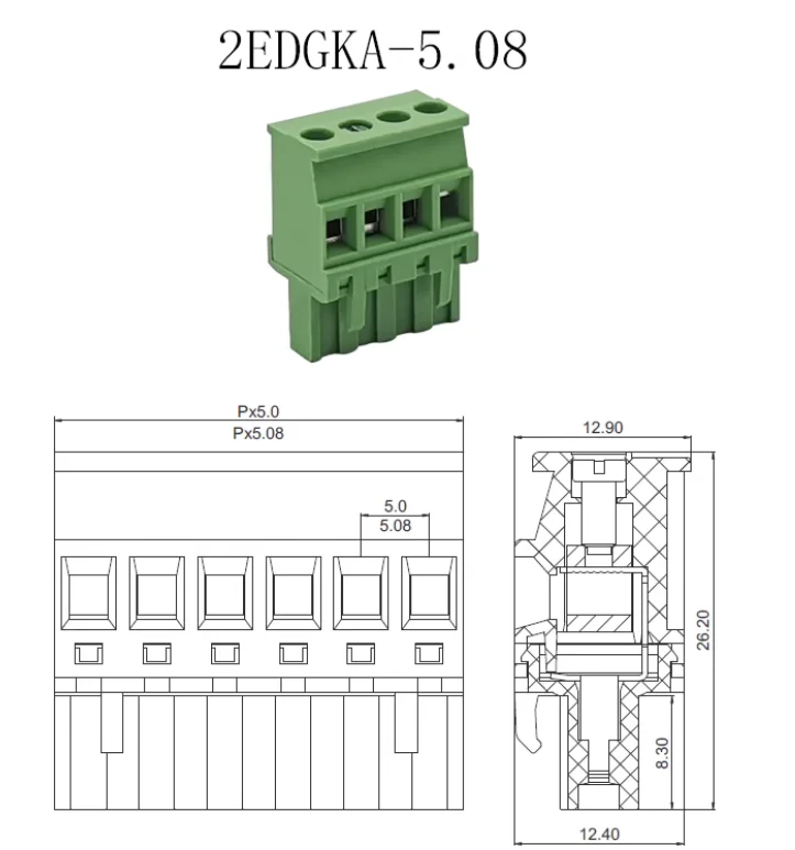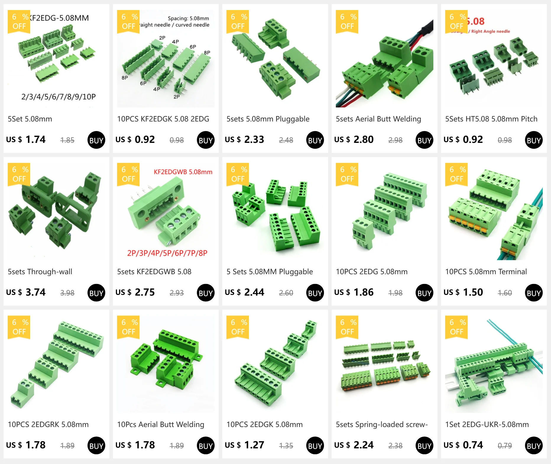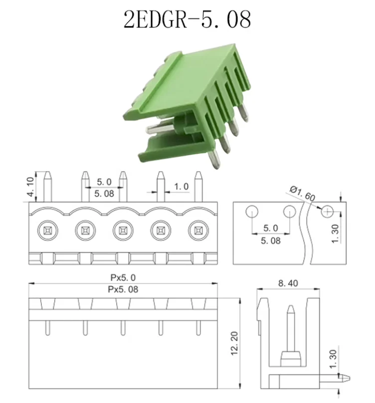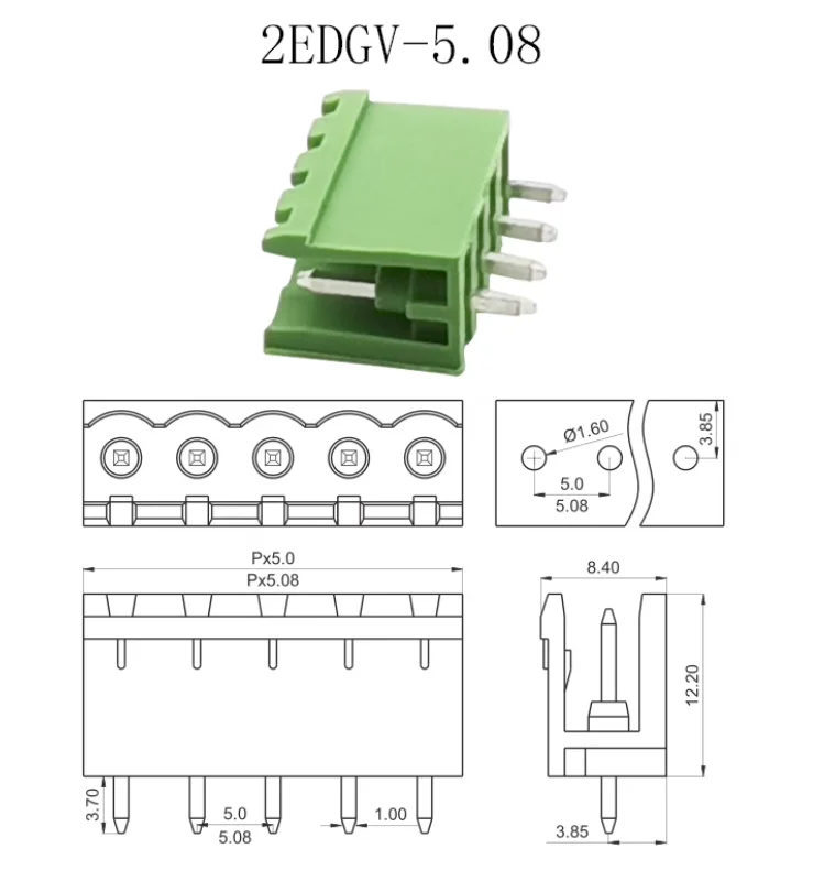 Comprar Terminal de cableado PCB enchufable, enchufe de salida lateral Vertical completo con soporte de aguja doblada recta, 2edgka, 5 Juegos, 5,08mm
