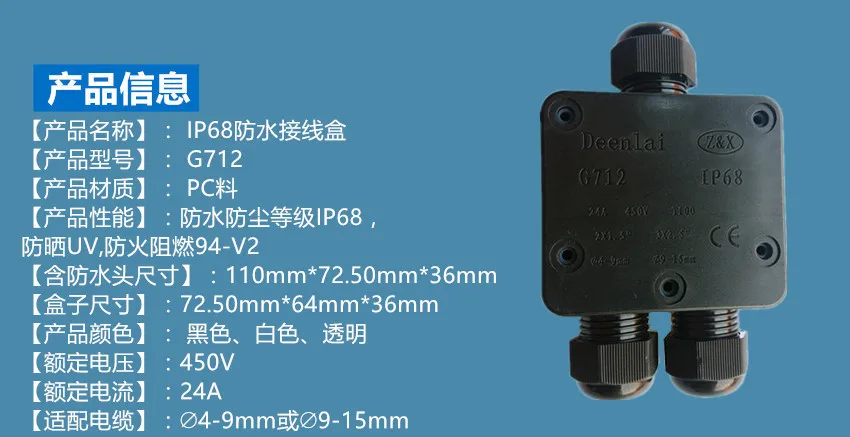 Terminal de caja de conexiones impermeable de 4-15mm, conectores de construcción de protección de Cable subterráneo de 3 puertos IP68 para luz de inundación de césped de calle
