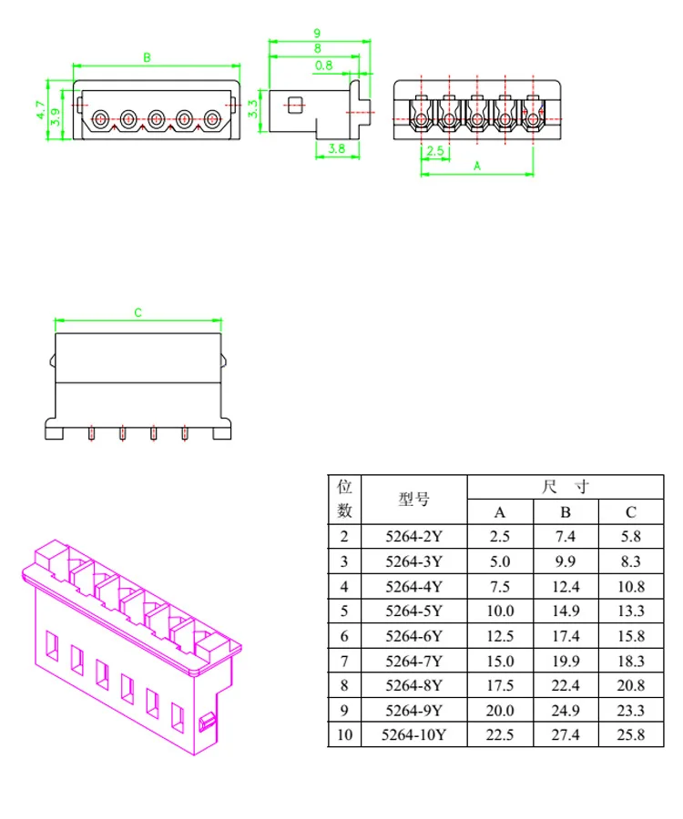 Terminal de conector de carcasa hembra de paso de 5264/5268mm de 2,5 de 10, 2,54, 3P, 4P, 5P, 6P, 7P, 8P, 9P, 10P, 12P, MM, carcasa de plástico