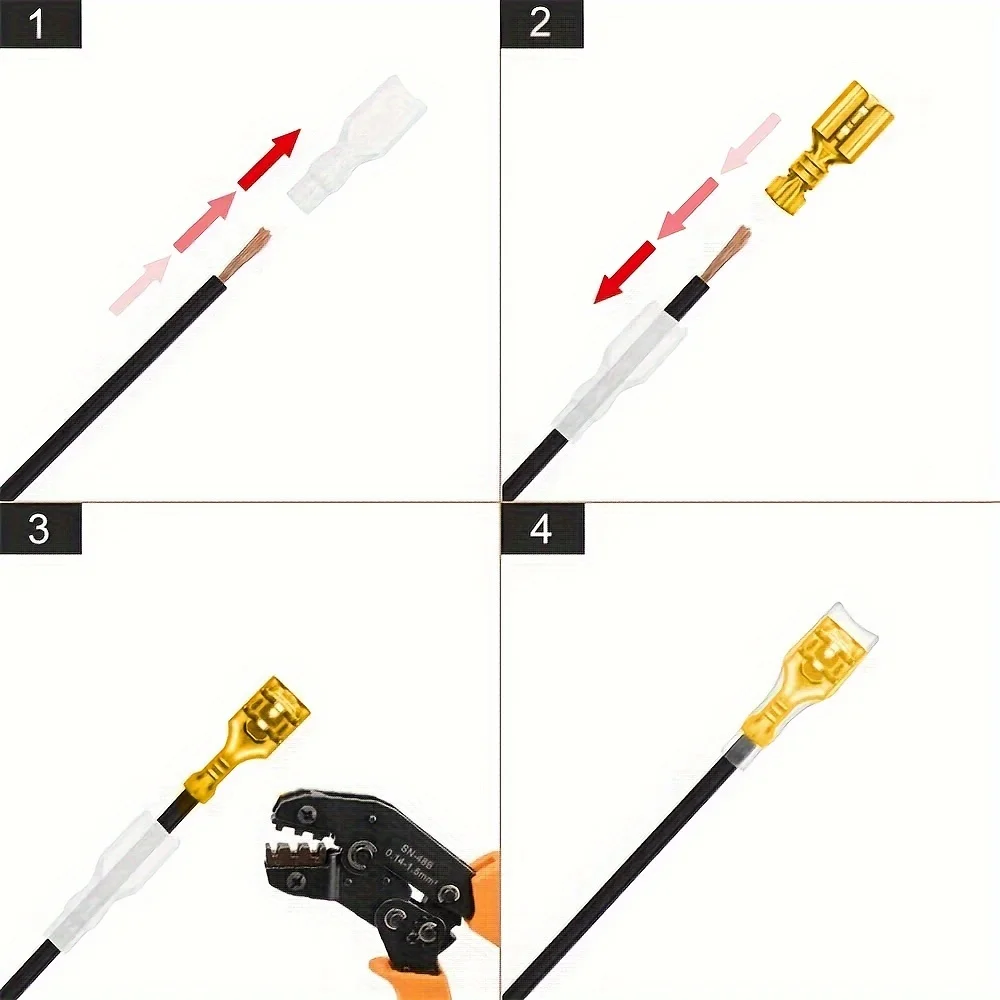 Los conectores macho y hembra vienen con tres tamaños diferentes (2,8 mm 4,8 mm 6,3 mm) son perfectos para cables de calibre 22-14, diferentes tamaños pueden satisfacer sus diferentes necesidades.