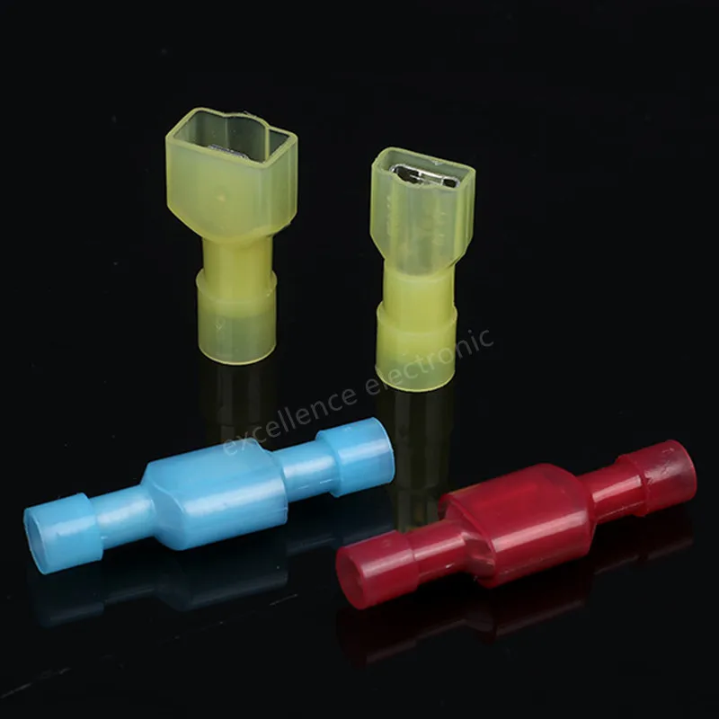 Terminal de crimpado aislado de nailon MDFN FDFN, Conector de pala de Cable eléctrico, Terminal de tope rápido, rojo, azul, amarillo, macho y hembra, 50 piezas