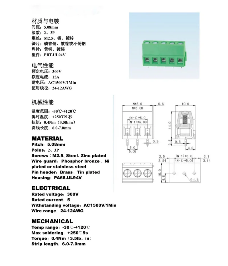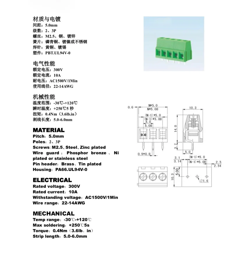 Comprar Terminal de empalme de tornillo de PCB KF128, 2P, 3P, 5,0 MM, 5,08 MM, KF120, KF350, DG308, DG128, MG128, 10 unids/lote